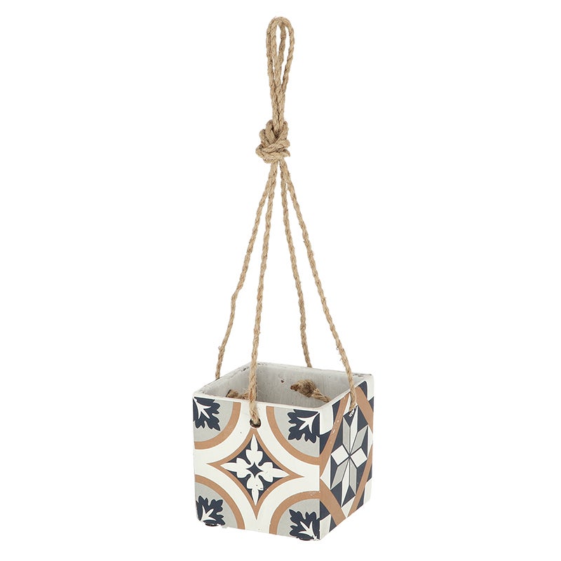 This hanging flower pot with motifs of Portuguses tiles gives a Mediterrenean touch to the interior, garden or terrace.- with Poruguses tile design- made from concrete- for indoor and outdoor- without drainage hole