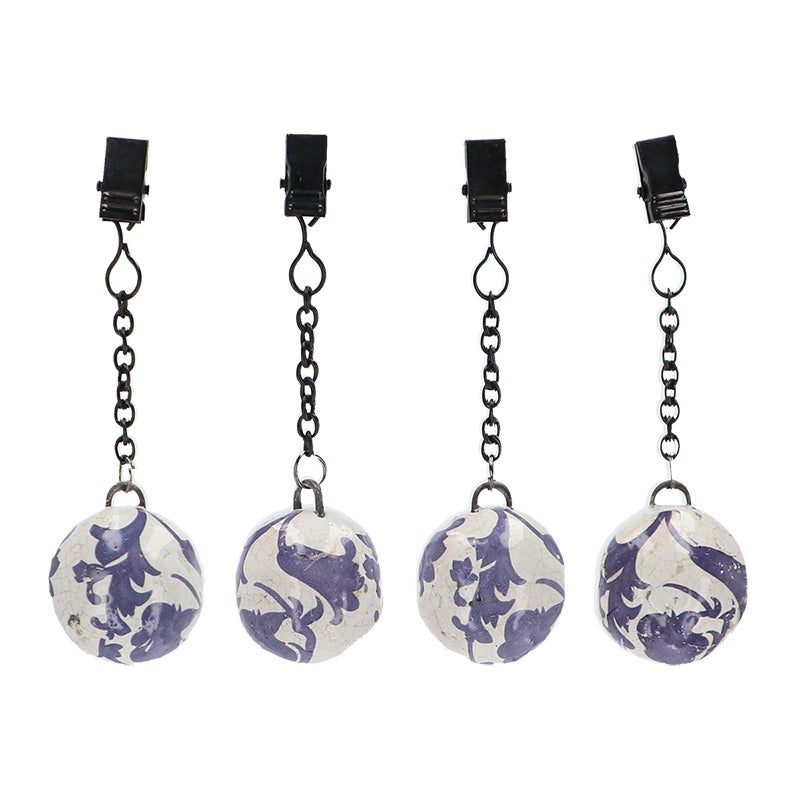 These tablecloth weights with blue and white print are easy to attach to the tablecloth with the clips. Dine in piece, even on windy days.- with floral print- provided with clips- easy to attach