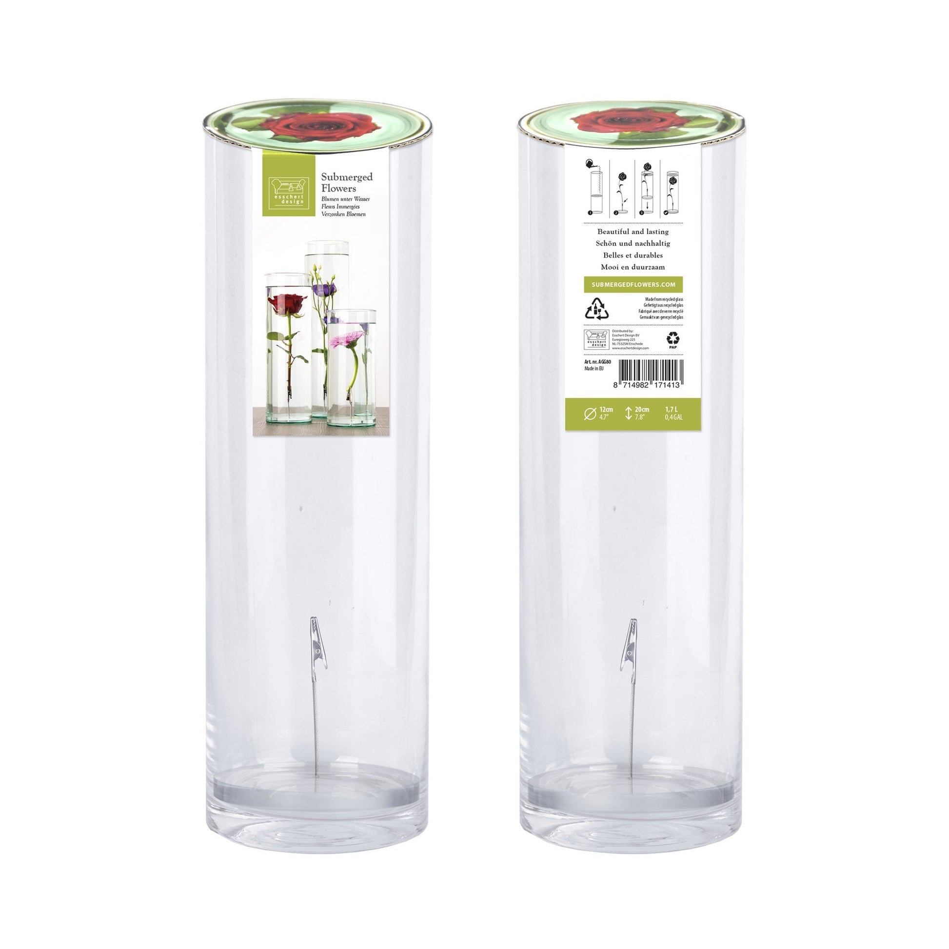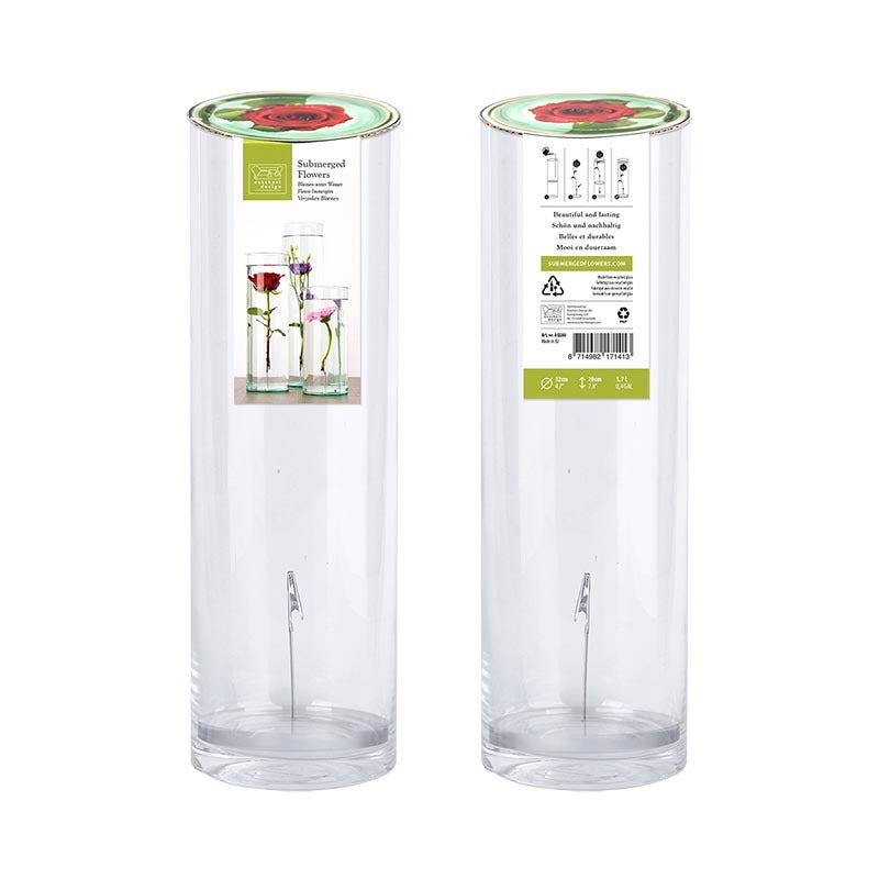 The Submerged Flower vase is made from recycled glass. The vase is equipped with a glass sinker and clip so that the flower can be fixed easily and stay under water. Enjoy flowers for longer.- including sinker with clip- made from clear, recycled glass- mouth blown- durable alternative to a bouquet of flowers- made in EU