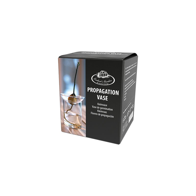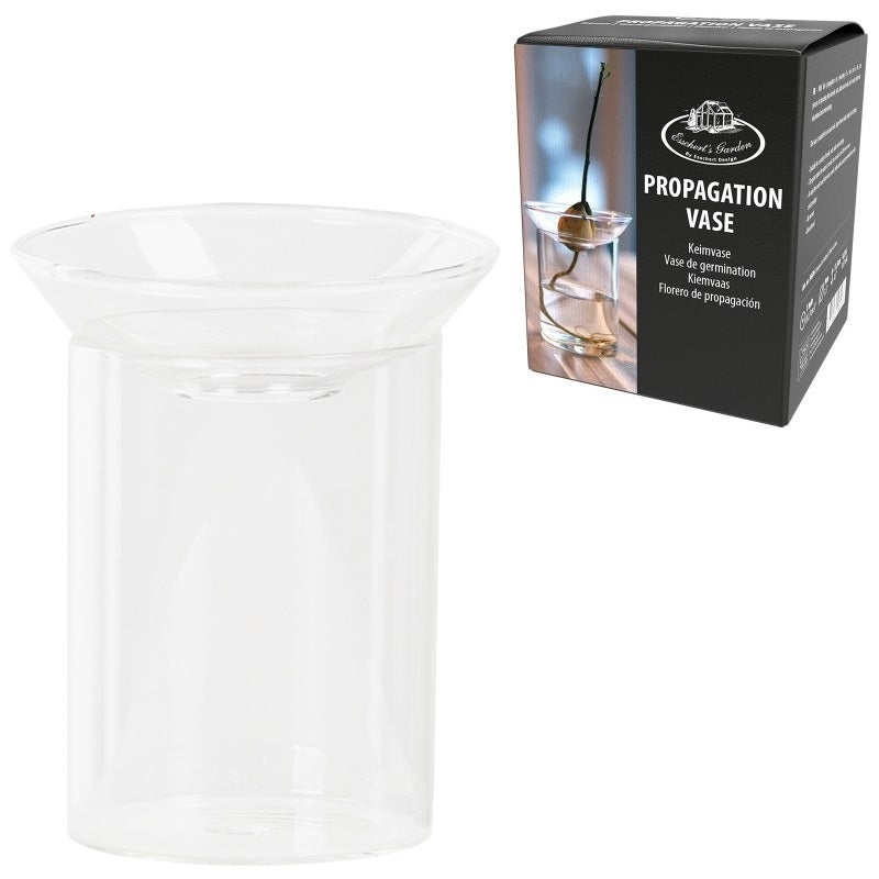 With this propagation set, consisting of a vase and a disc, the process of sprouting from kernels, nuts, bulbs and seeds can be easily observed; educational and entertaining.This vase is suitable for avocado seeds, larger flower bulbs (tulip) and cuttings.- suitable for a variety of seeds, nuts and cutting- the plant takes the water it needs- as only the roots touch the water, seeds, bulbs and nuts are prevented from mold and spoilage- no weeds- educational