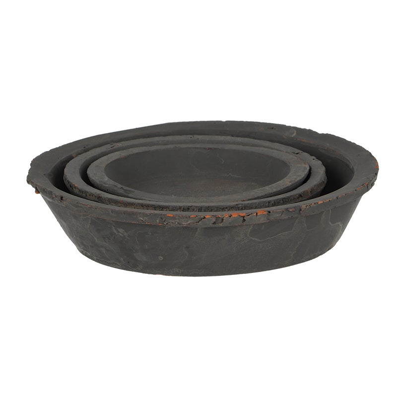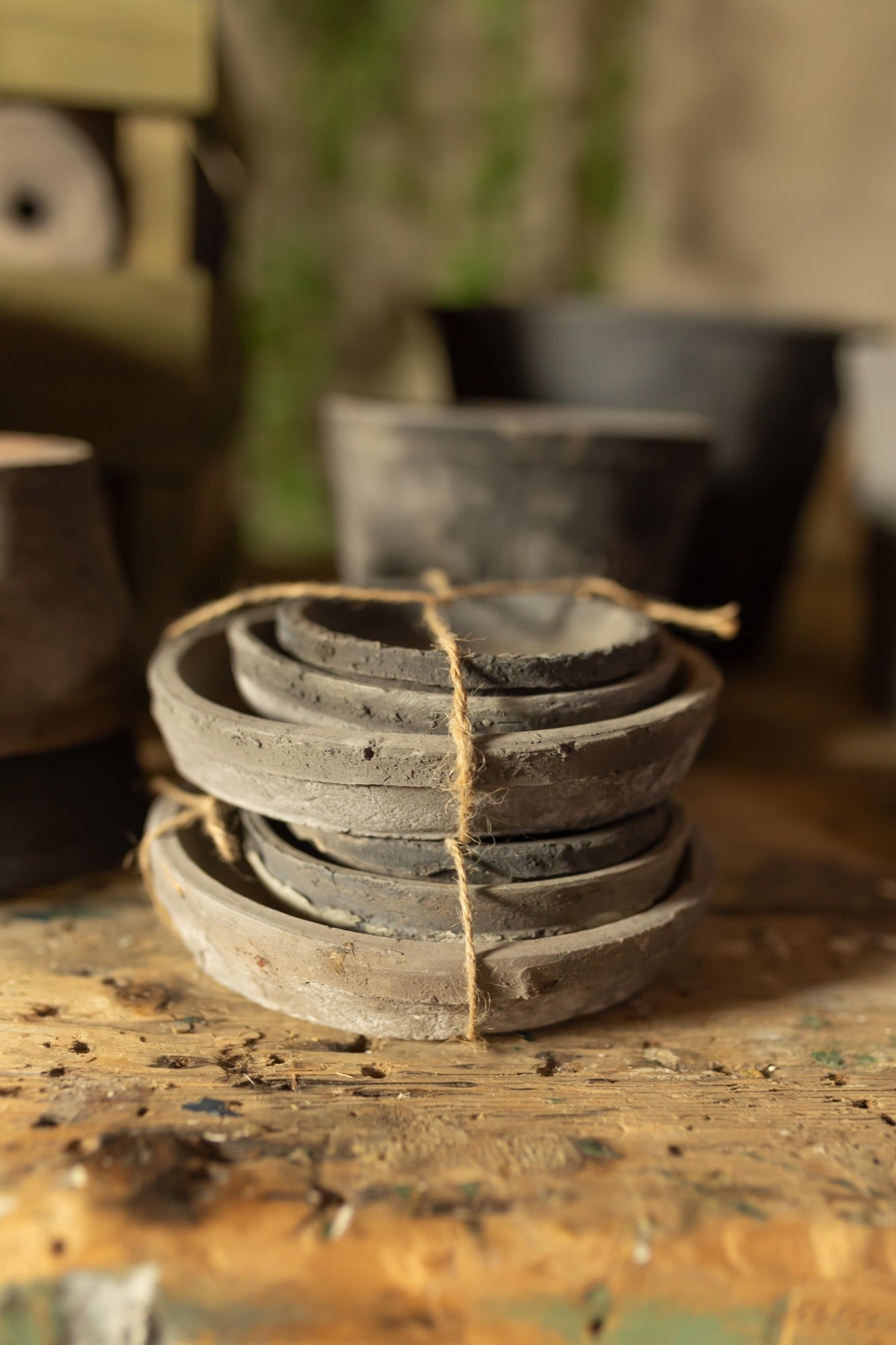 Grey Saucer Round S Set Of 3, Terra Cotta, Last Chance, 4X4X1, 4.9X4.9X1, 6.3X6.3X1.4 In, China