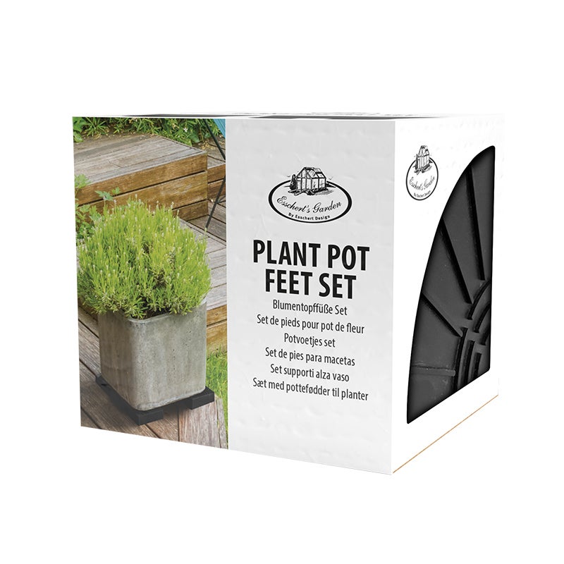 Looking for something sturdy to place your plant pots on? This set of four plastic pot feet is suitable for round and square pots. The pot feet can carry pots of up to 50 kg. This set of four plastic pot feet is suitable for round and square pots. They can carry a weight of up to 50 kg. The set comes gift-wrapped.- Suitable for round and square pots- Comes gift-wrapped- Suitable for pots weighing up to 50 kg