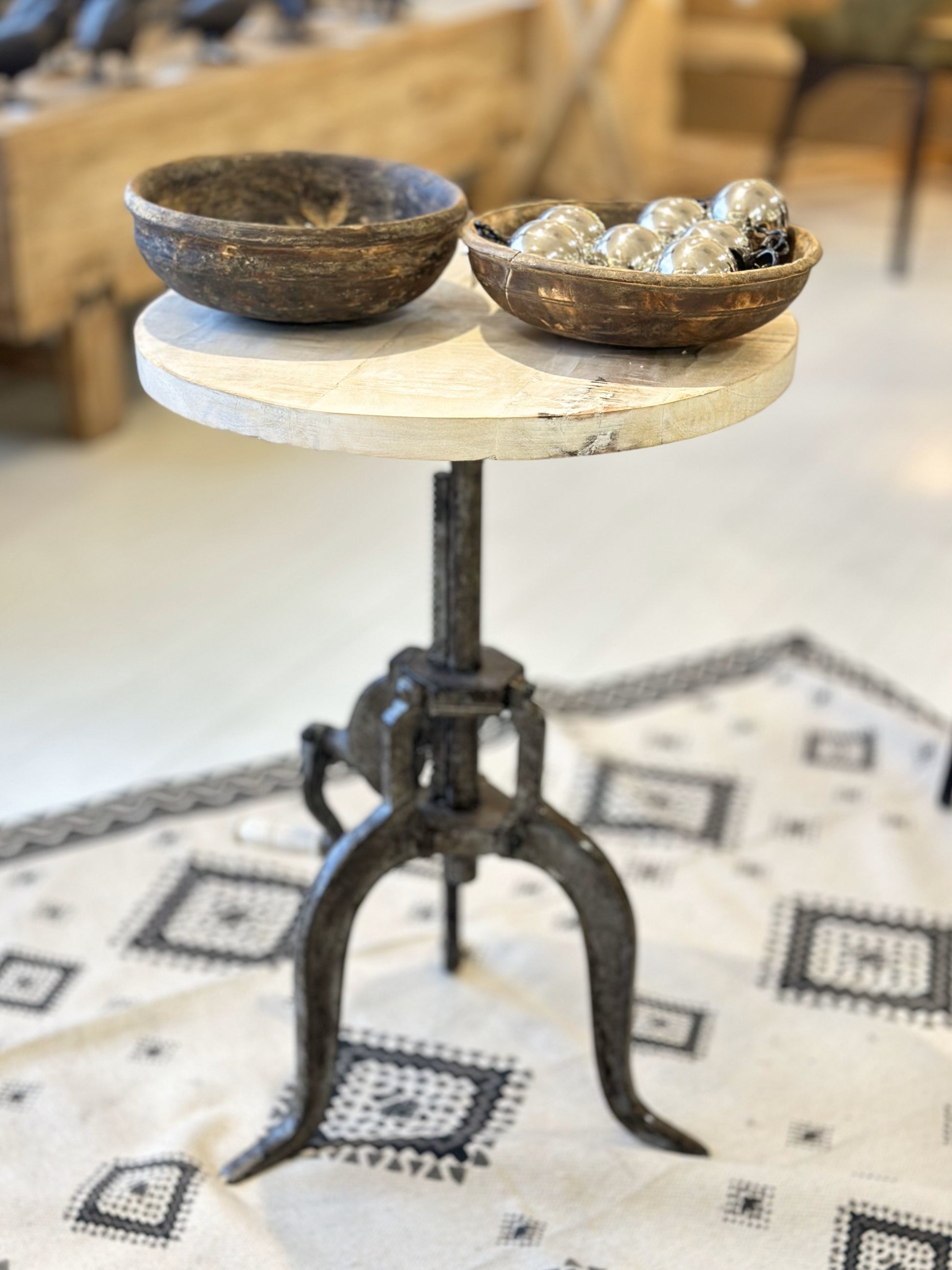 25% Off, Kai Adjustable Crank Side Table, Rustic Black, Driftwood Table Top and Rustic Iron Base, India