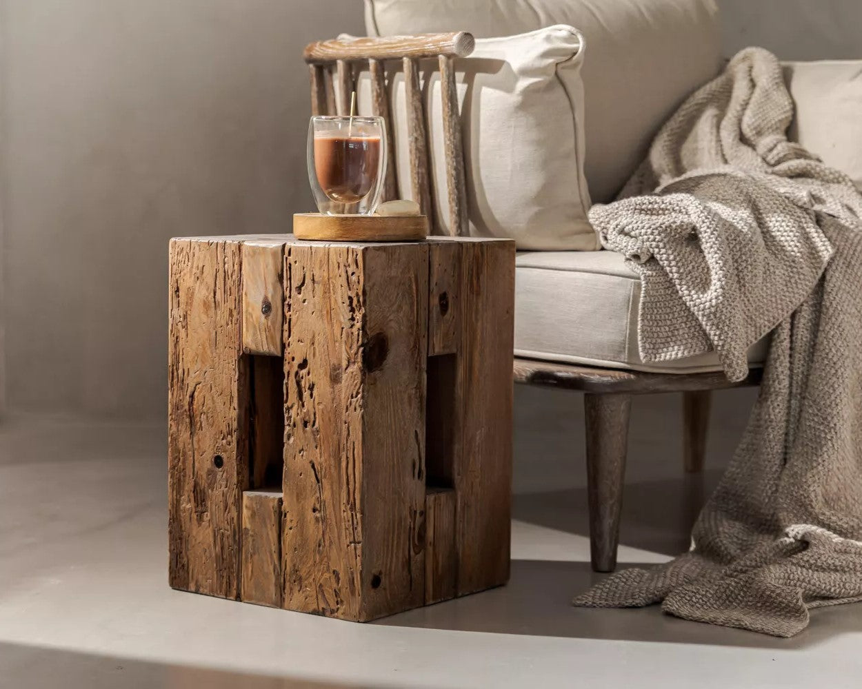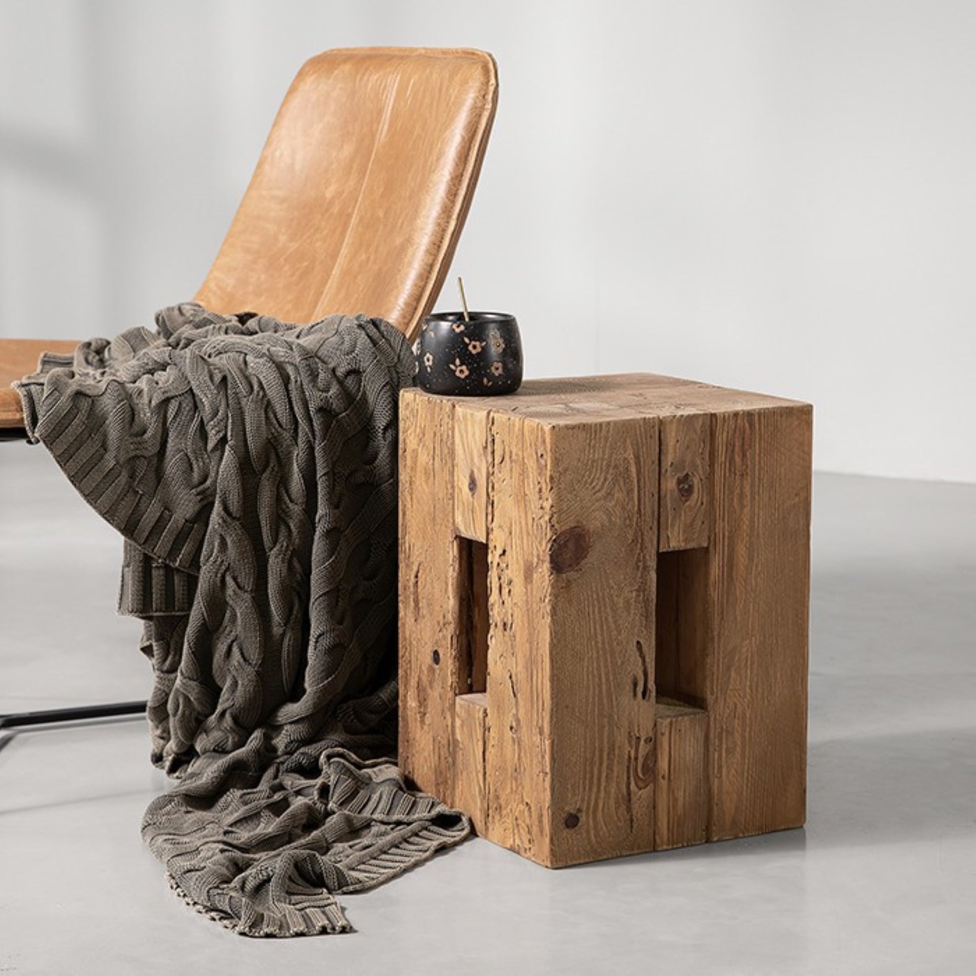Recycled Wooden Ottoman Stool, Recycled Pine, China