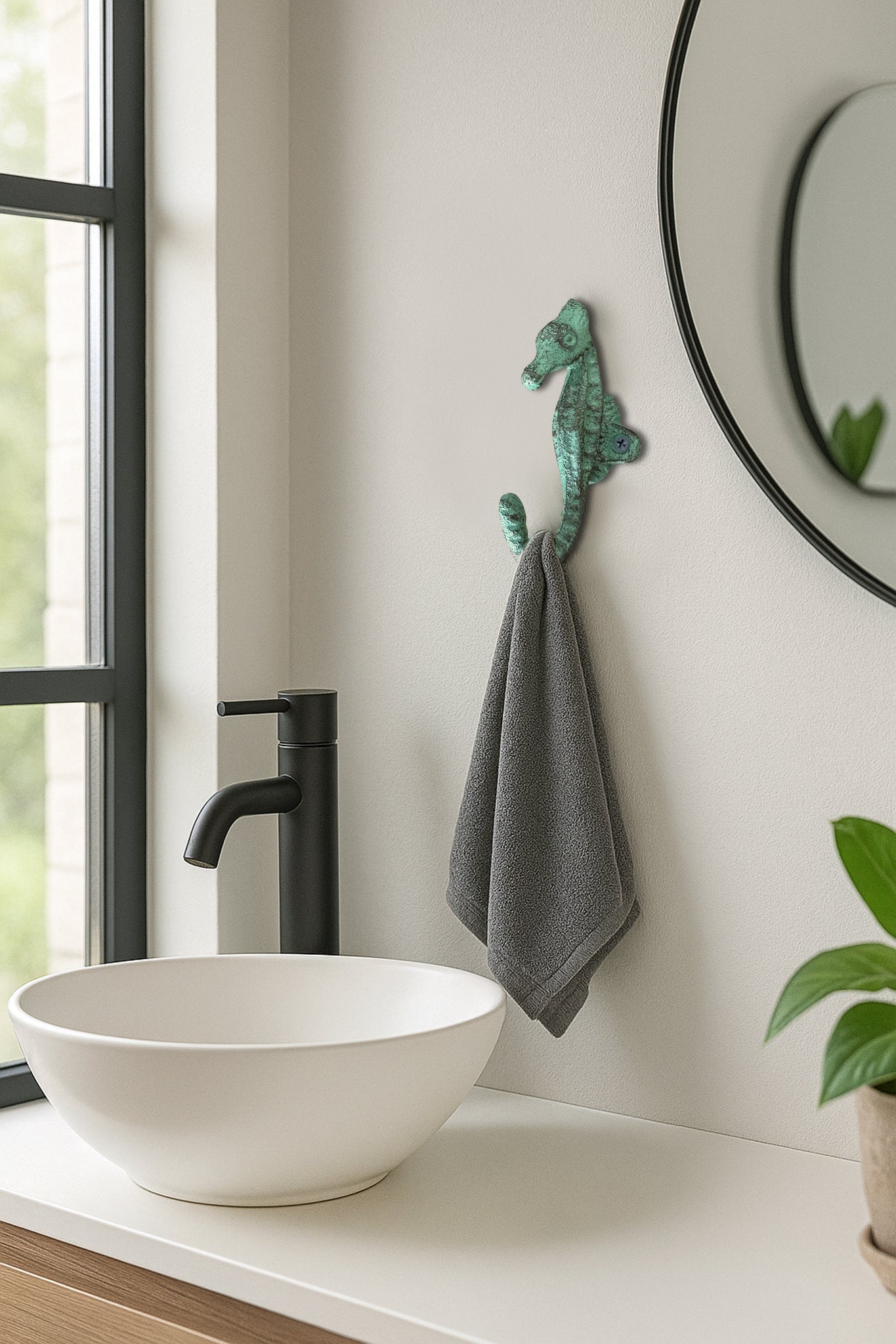 Seahorse Wall Hook, Antique Copper, Cast Iron, China