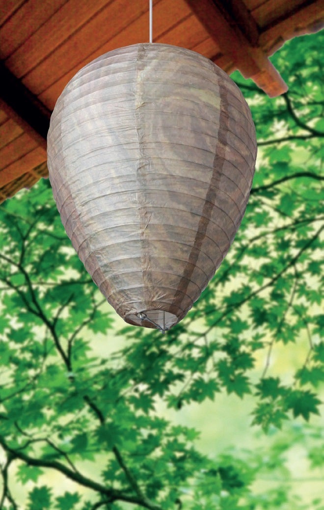 This wasp scarer is actually an imitation wasp nest. Wasps are incredibly territorial insects. They usually won’t build their nest within a radius of 60 meters (197 ft) of another nest. If they find an existing nest, they will leave the area. Hang this wasp scarer in the backyard to discourage wasps from building their nests. This is an animal friendly manner of deterrent.- animal friendly manner of deterrent- including suspension rope- packed flat in polybag with eurolock