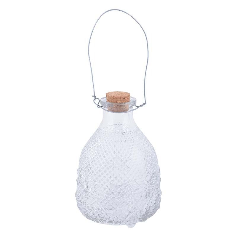 During the summer time, wasps can ruin the mood outside. This hobnail glass wasp trap will make that a thing of the past. Fill the glass jar with lemonade or vinegar to lure the wasps to the trap. Because of its construction wasps can get in, but they cannot get out. This wasp traps should be place on an even surface or hung from the metal loop at the top- easy to clean and fill