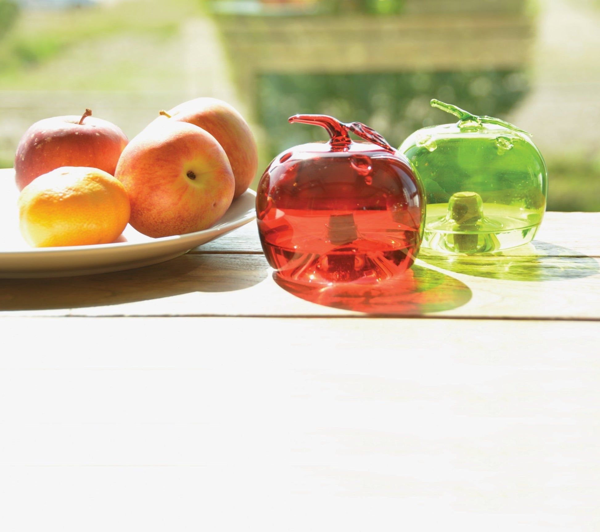 Everyone knows how annoying fruit flies can be. Especially during the summer these flying pests are attracted to fruit in the kitchen or basement. These glass fruit fly traps provide a non toxic solution to fend them off. Place the transparent apple near a fruit bowl and add a mixture of different liquids (water, vinegar and a few drops of dish soap) to the trap. The flies will try to get to mixture through any of the four small holes on the top. Once inside the glass, they cannot escape. This trap should be placed on an even surface.- assortment of two colours (green, red)- non-poisonous trap- packaged in full colour gift box