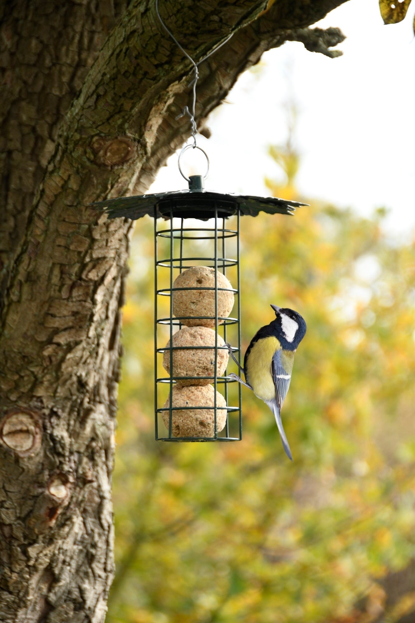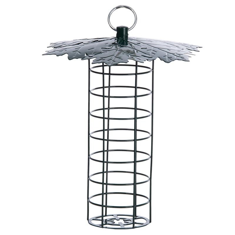 Fill this suet ball dispener with leaf roof with suet balls. The open structure allows the birds to approach the feeder from all sides.- open structure- easy to (re)fill- leaf lid