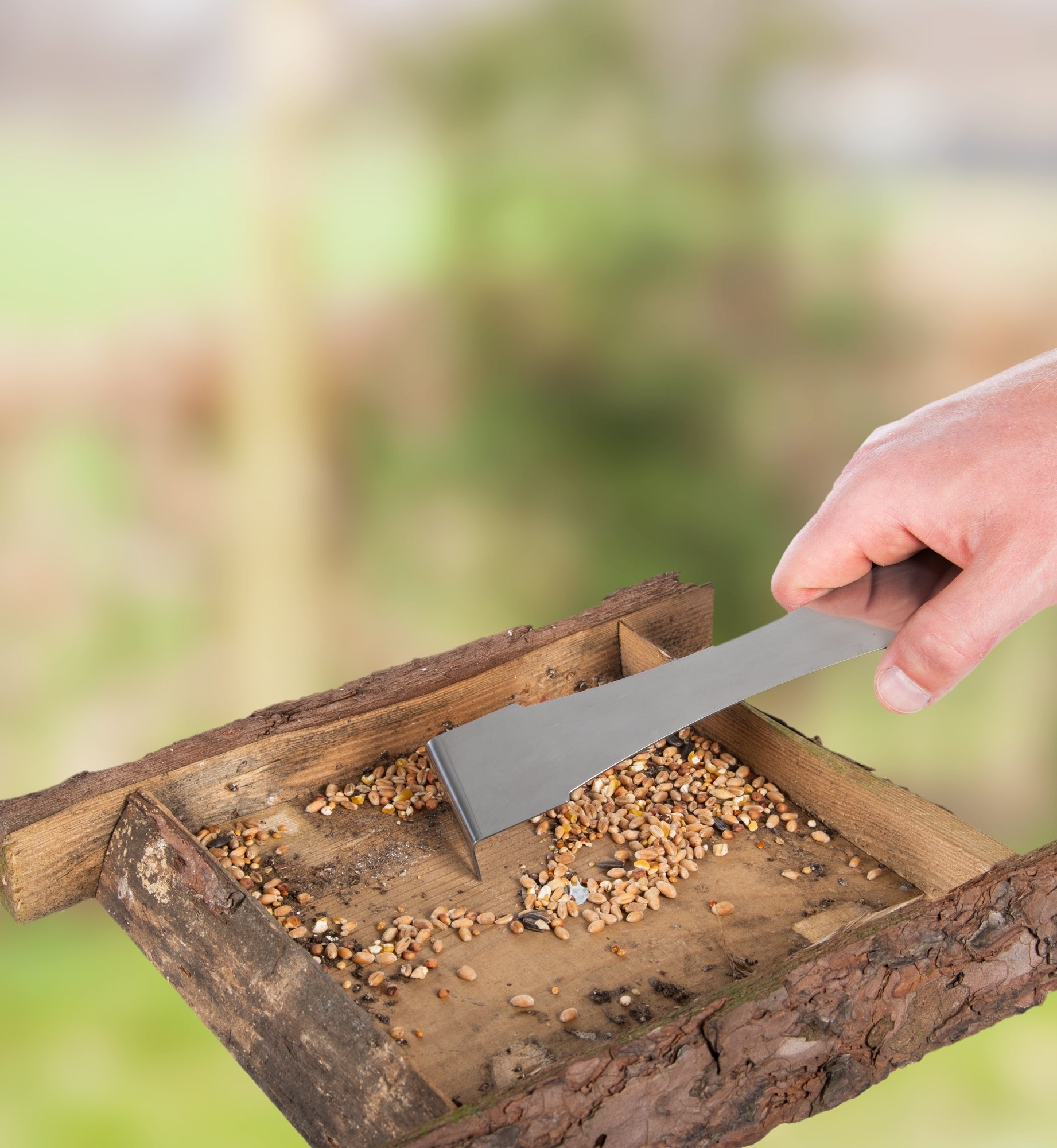 Handy bird table scraper for cleaning bird tables. Bird tables have to be regularly cleaned to prevent mold and diseases.- easy to handle - suitable for all kind of bird tables- can be used in two directions