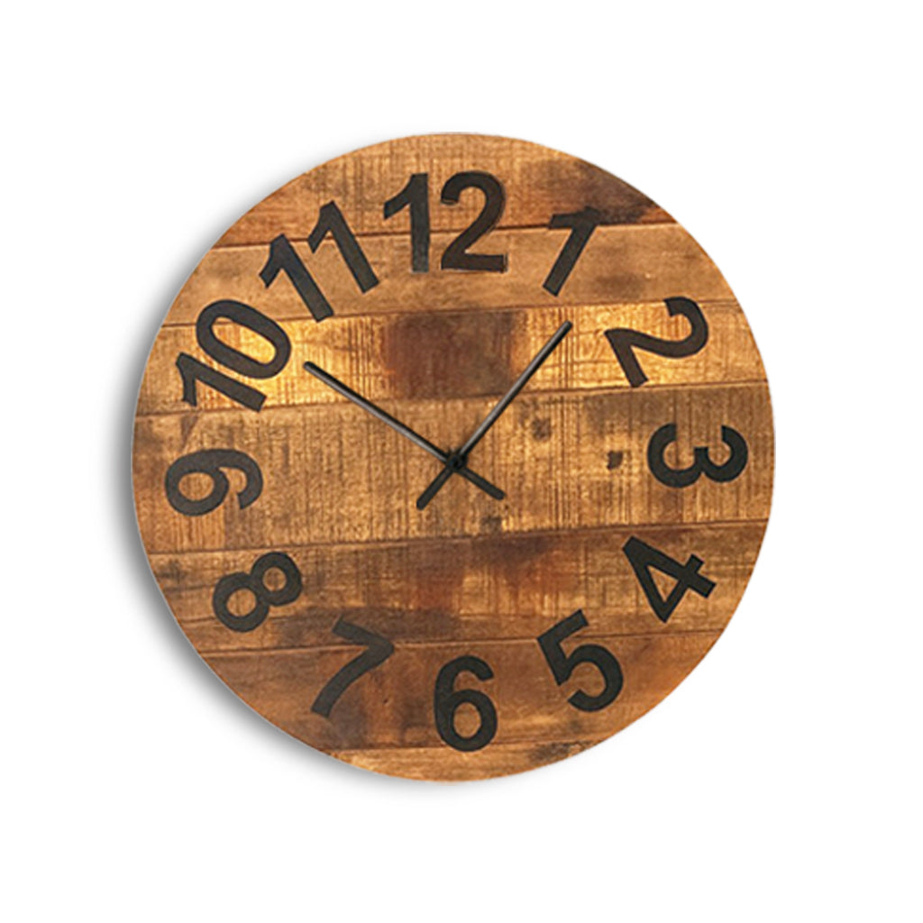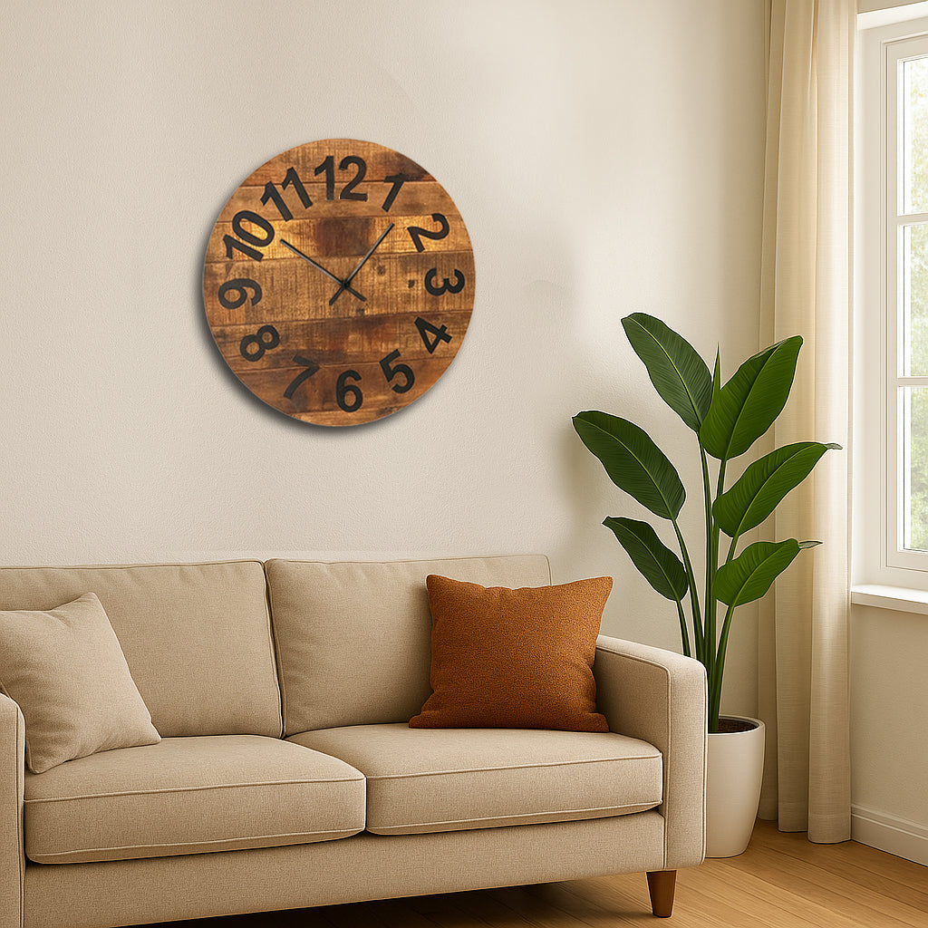 Large Old Wood Clock with Metalic Numbers, Dia: 17.7 in, India