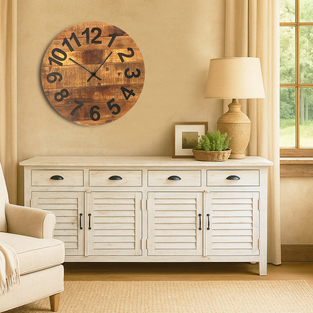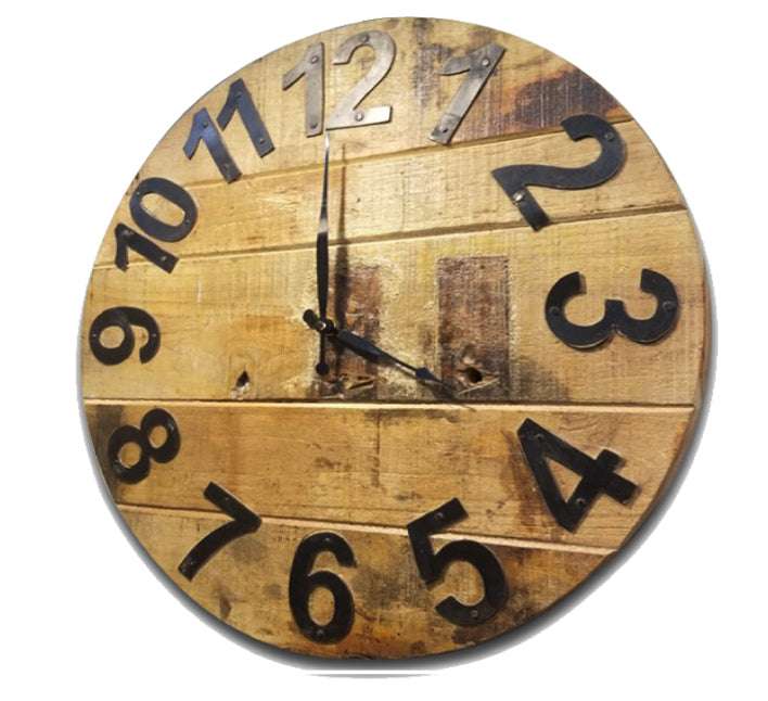 Large Old Wood Clock with Metalic Numbers, Dia: 28 in, India