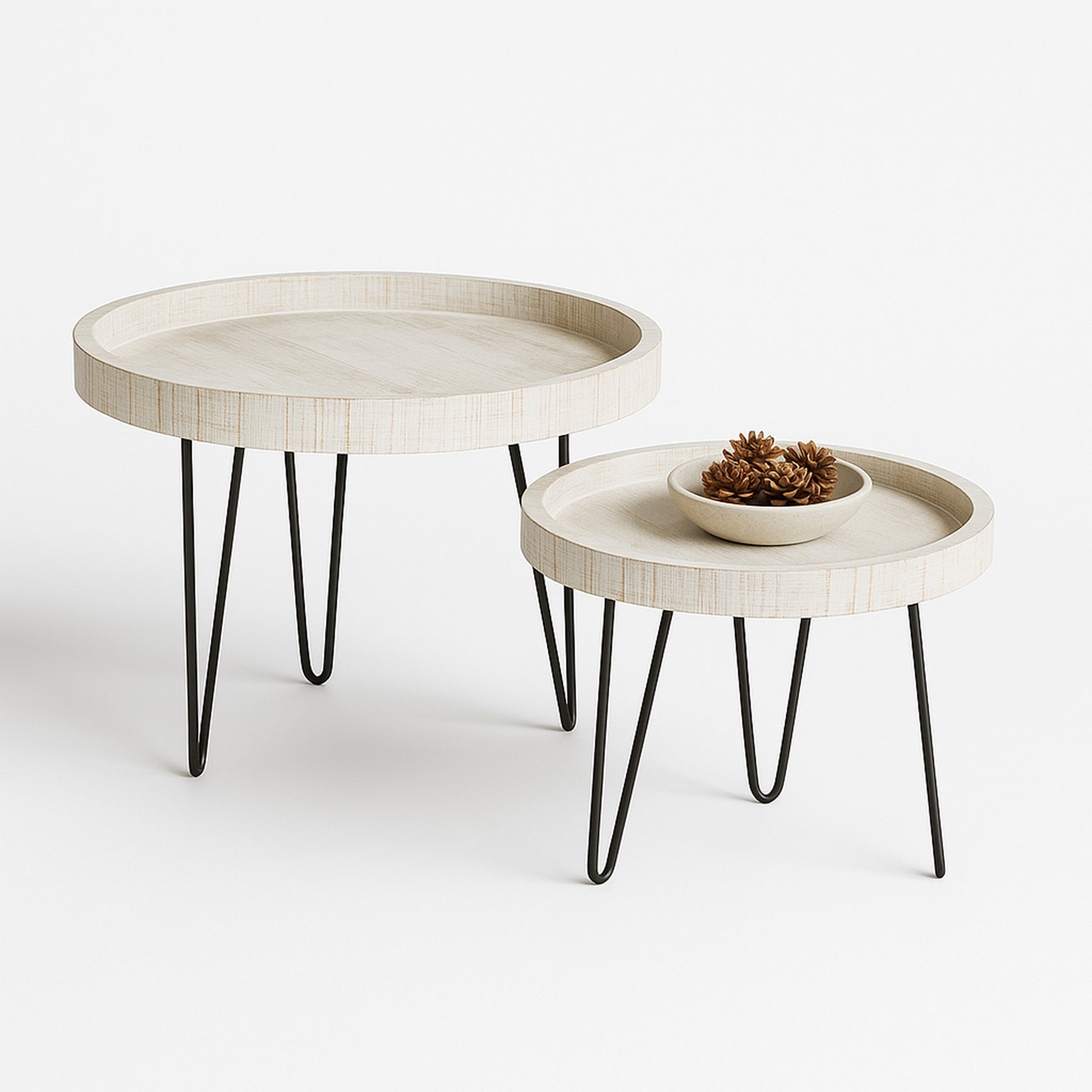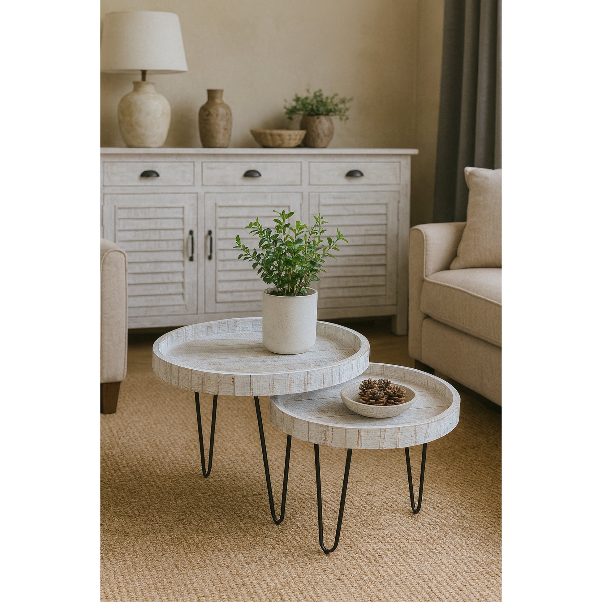 Reclaim Wood Nesting Table Set, White Washed, 24 (D)x16 in, 31.5 (D)x 17 in, India
