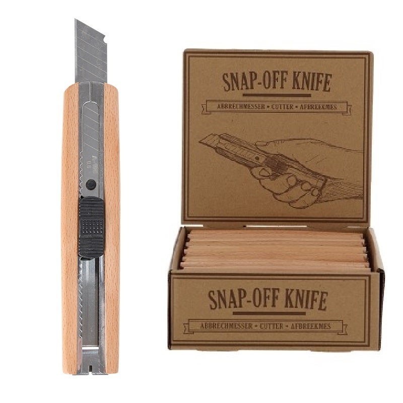 This snap off knife is provided with a wooden handle.- wooden handle- natural- easy to use- packed in a table display