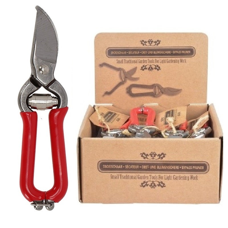 Traditional garden tools for anyone with a green thumb. The durable choice in material means they will last a long time. These small pruning shears are suited for pruning buds and pruning flowers. Due to its size it is also suited for indoor gardening.- lock in the back- ergonomic handle- packaged in table display