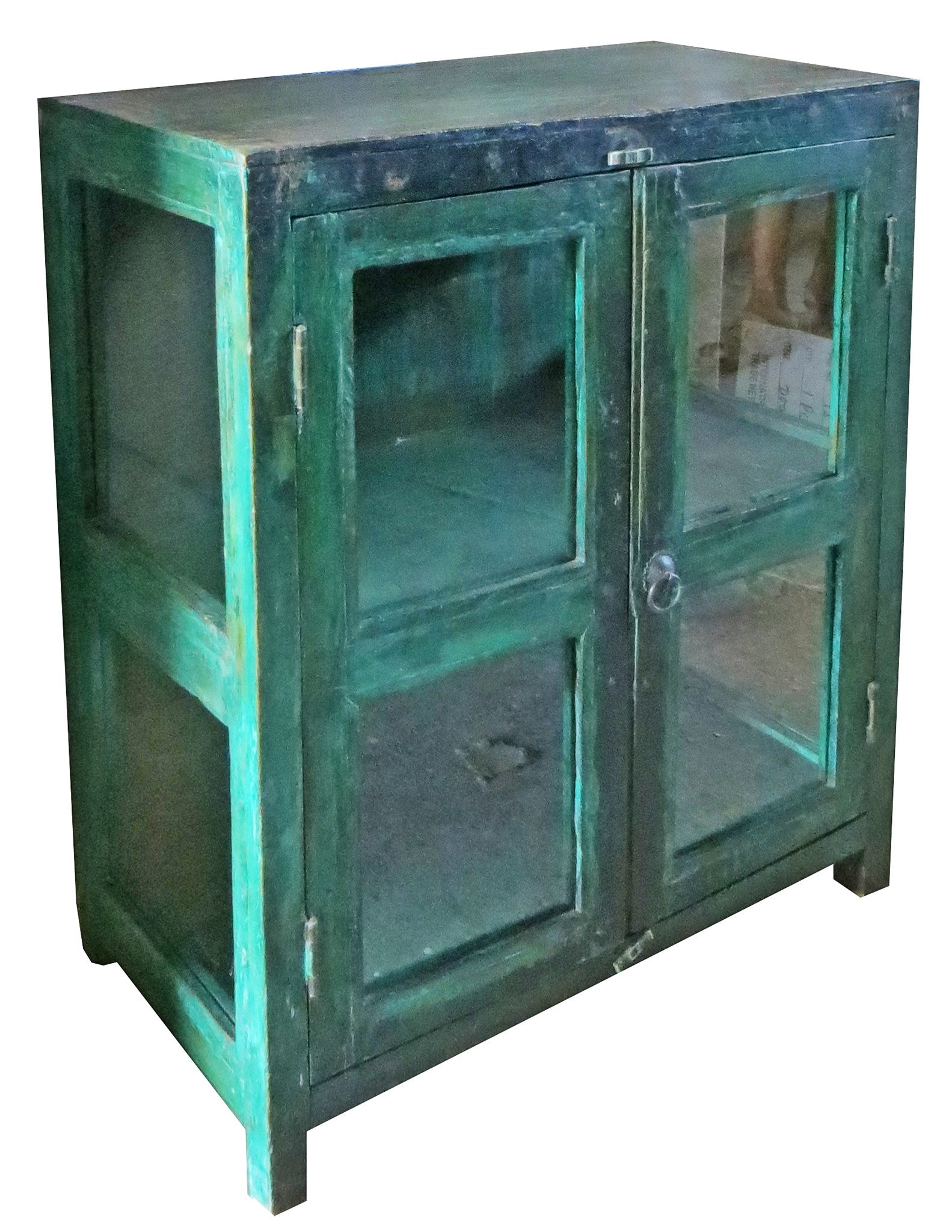 Vintage Wood Cabinet w/gls, Green - 29.92x16.14x38.98 inchesIndia