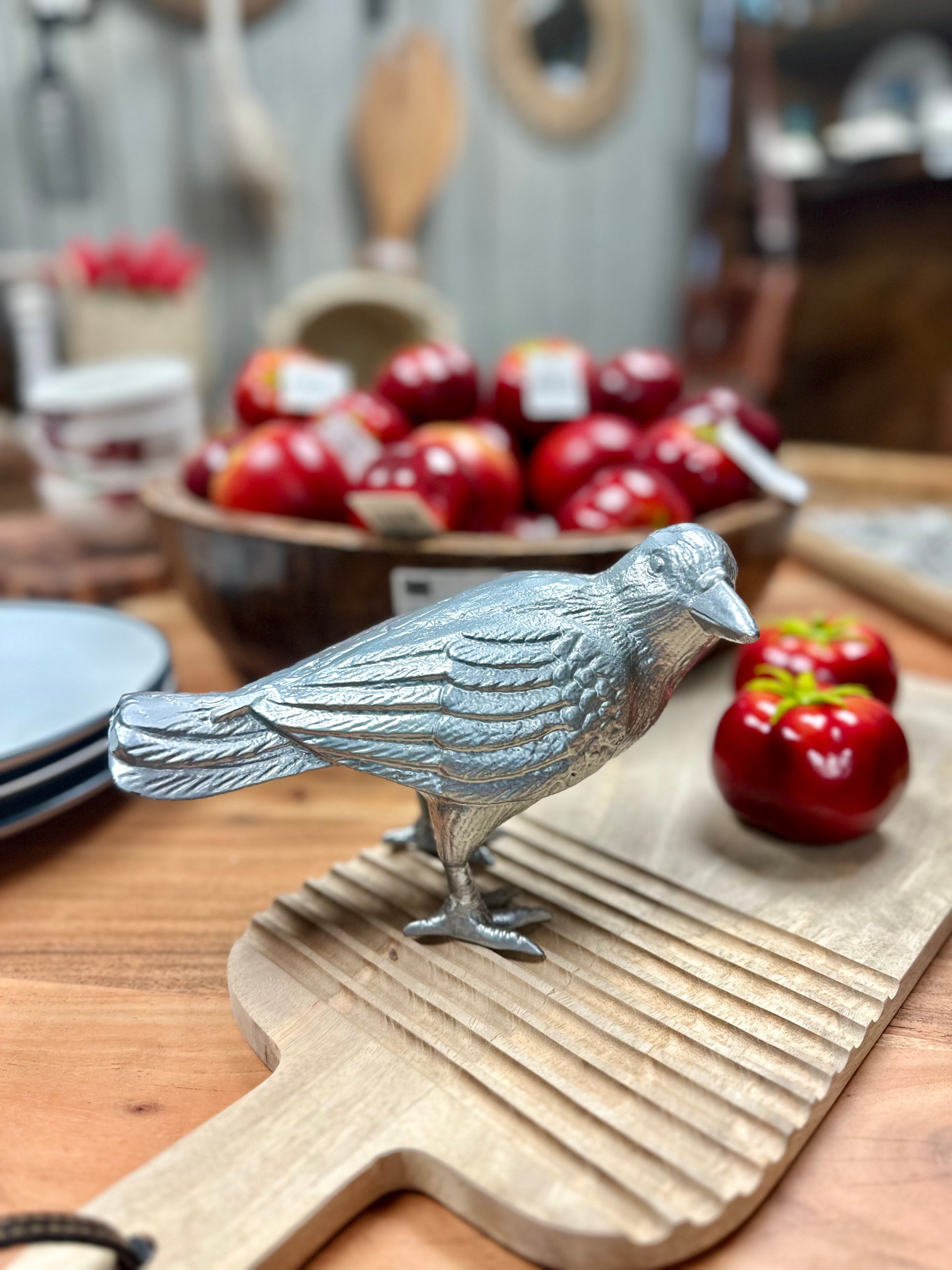 Cast Iron Crow, Head To Side, Sliver Finish