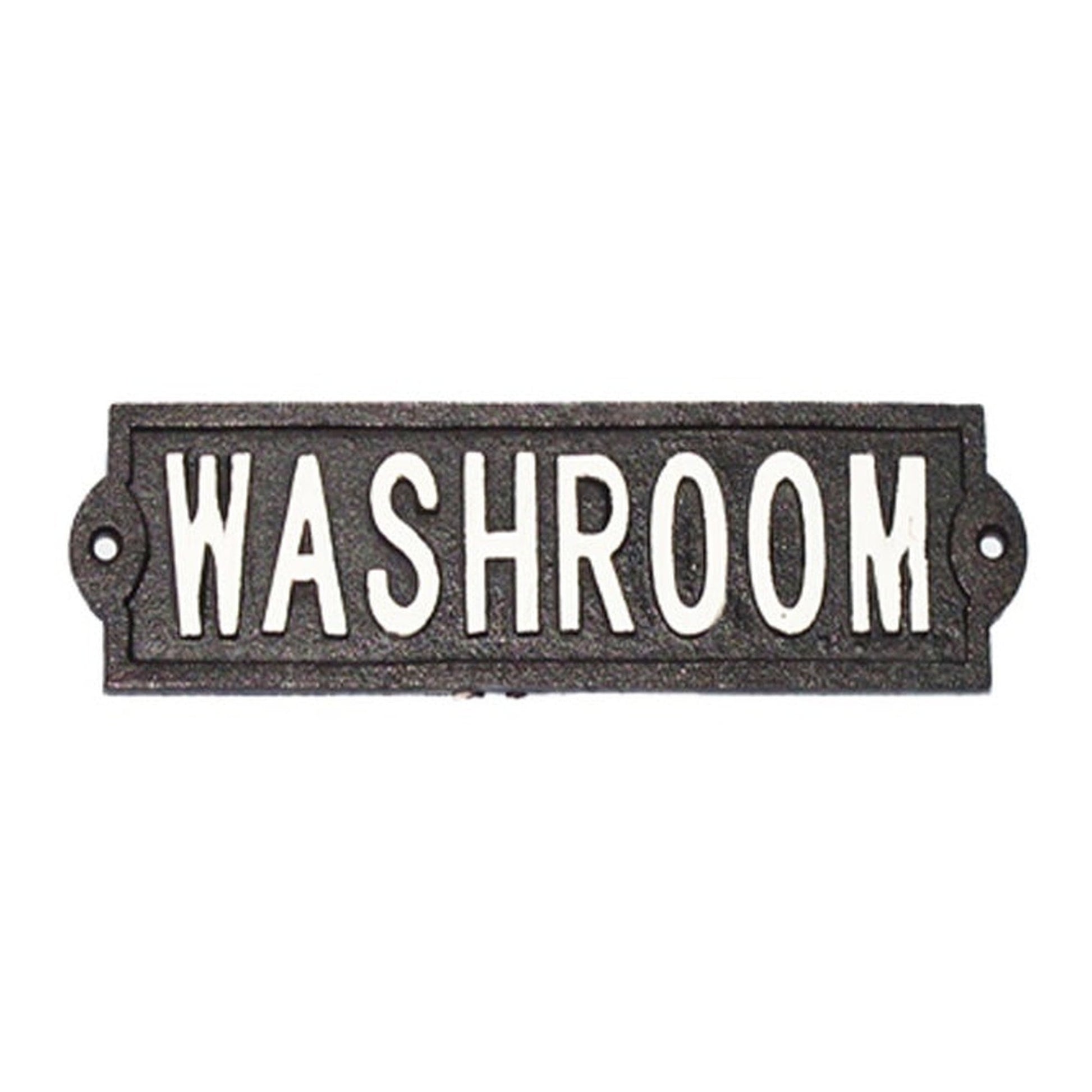 washroom sign, white script on blk background (8.7 x 2.2 x 0.20 ), China