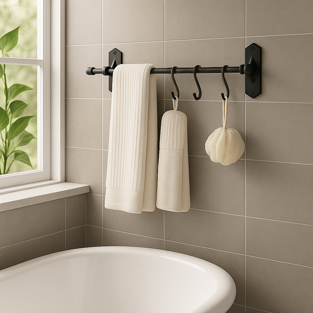 Hand-Forged Hook Rack With 3 Hangers (SR)