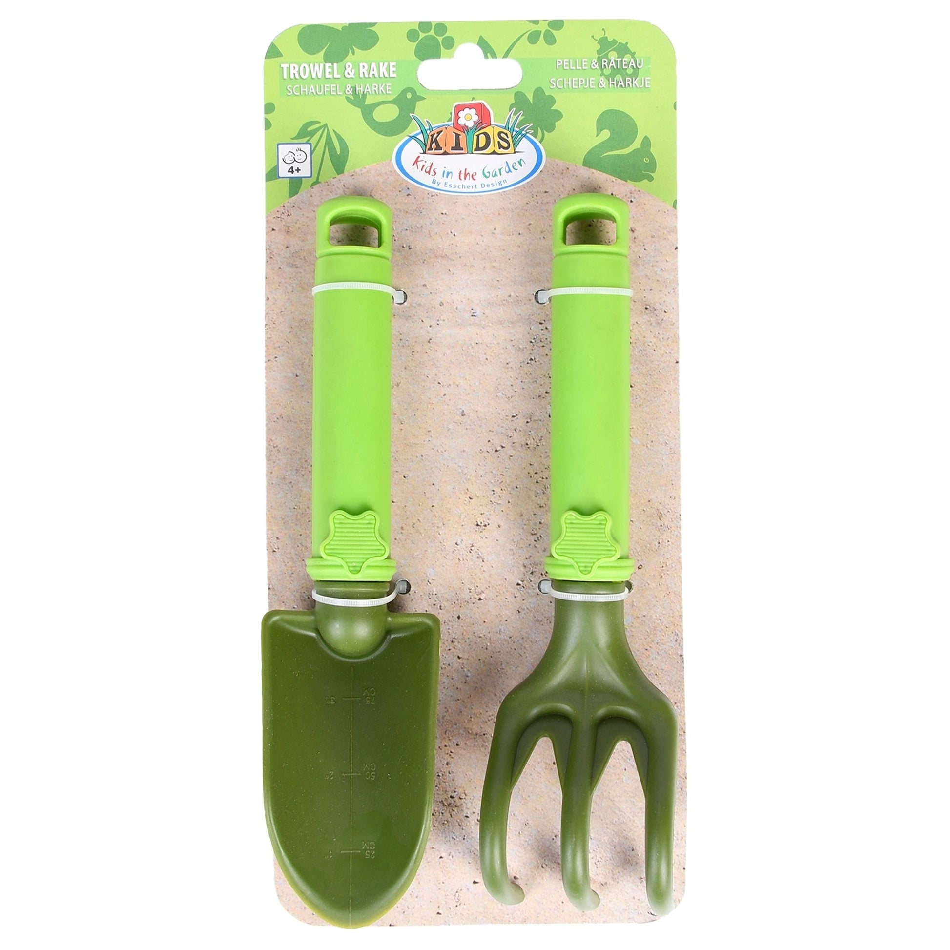 These tools are designed for working alongside mom and dad in the garden or outdoor play time. The set consists of a trowel and rake and has a perfect fit for little green thumbs.- consists of a trowel and rake- perfect fit for little hands- encourages helping in the garden