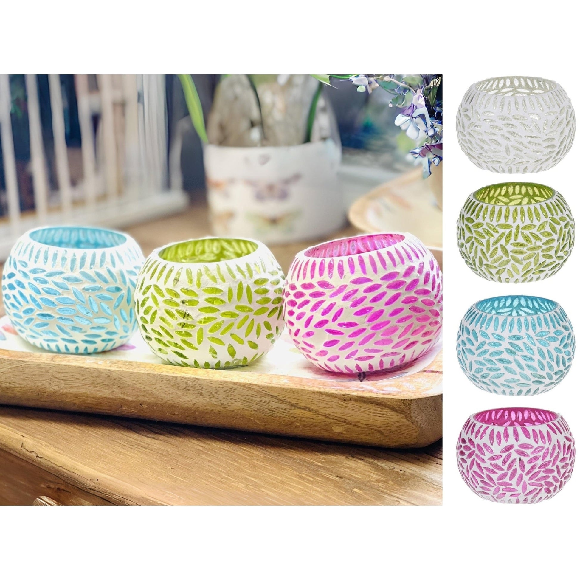 Celeste Tealight Mosaic 6Cm 4Ass Clr, 30% Off, (YVR)