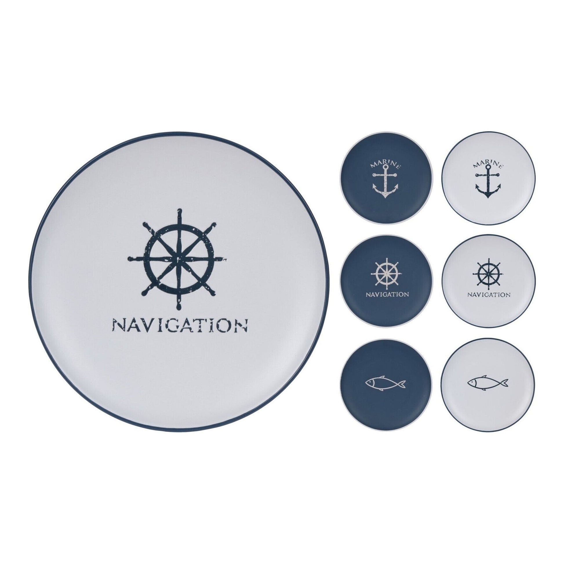 Q75600250, Plate Stoneware Dia 7.9 in. 6 Assorted Marine Designs (2X Fish Design /2X Navigator /2X Marine)