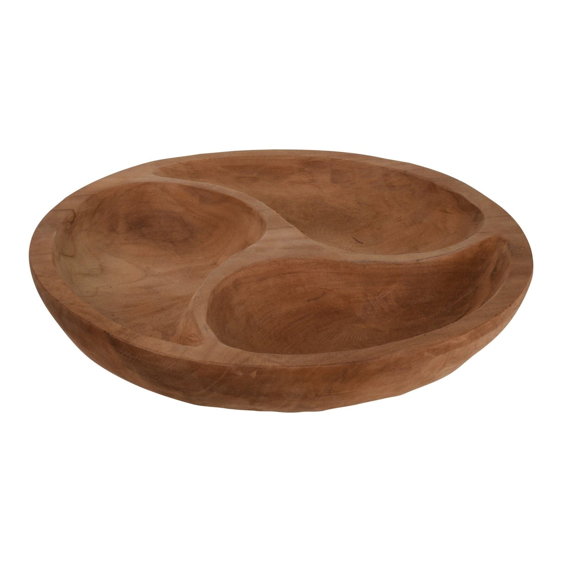 50% Off, J11302200, Serving Platter, Round, Teak Wood, 3 Compartment Divider, Weight 1800 Gram, Teak, Indonesia