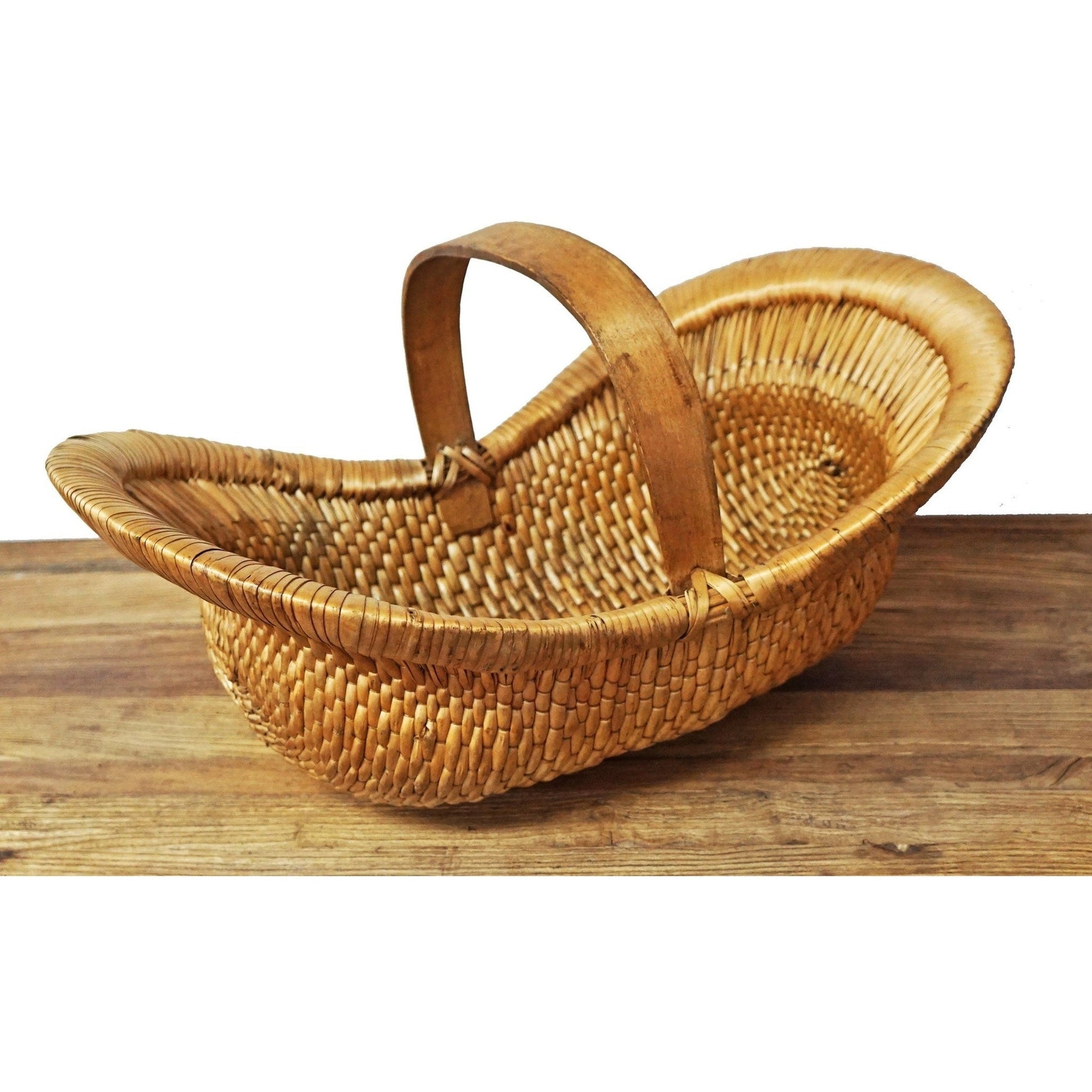 10% Off, Antique Willow Basket w handle, oval. 14x6x10inch appx. , India