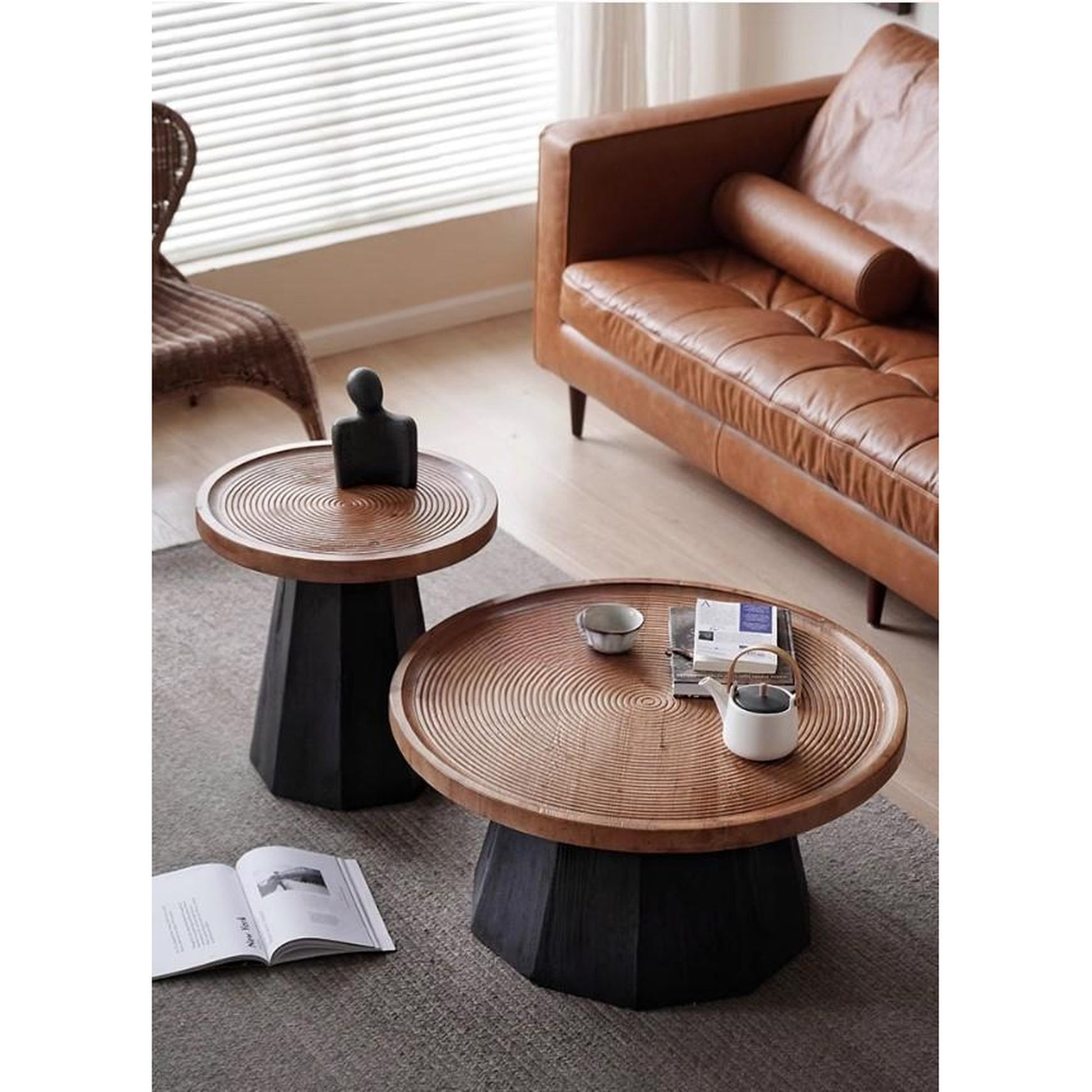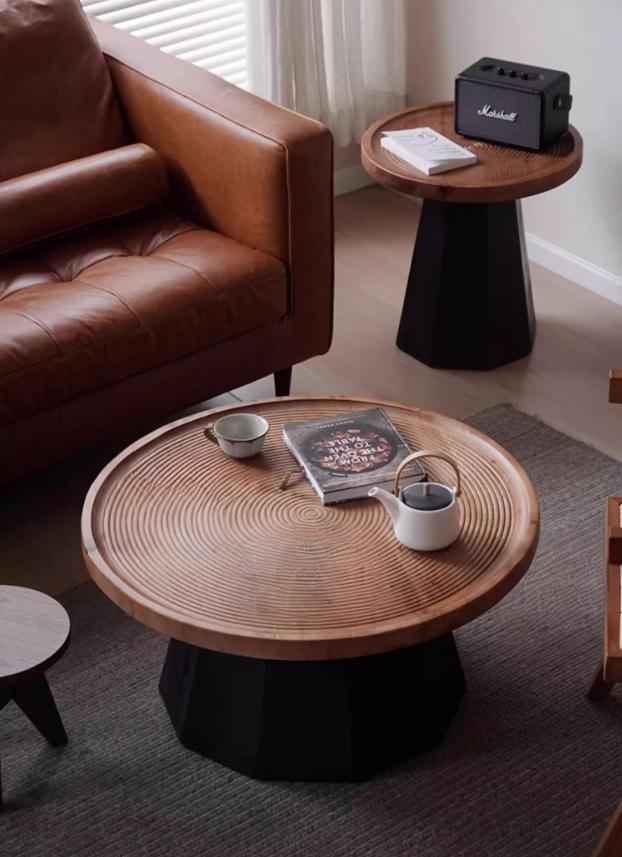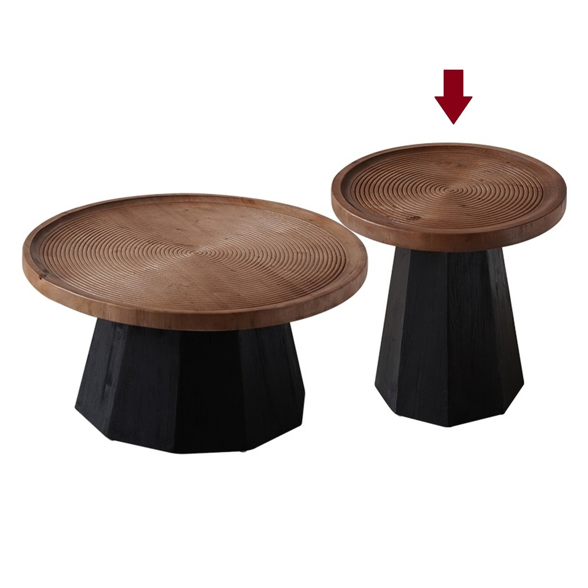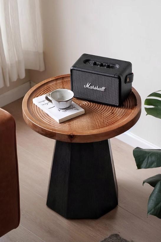 20% Off, Recycled Pine Side Table, Black Hexagonal Tapered Base , India