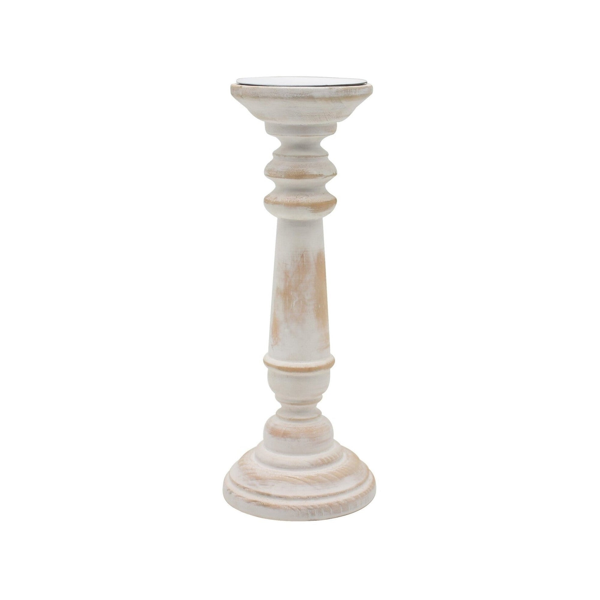 35% Off, Round Wood Pillar Candle Holder, Antique White