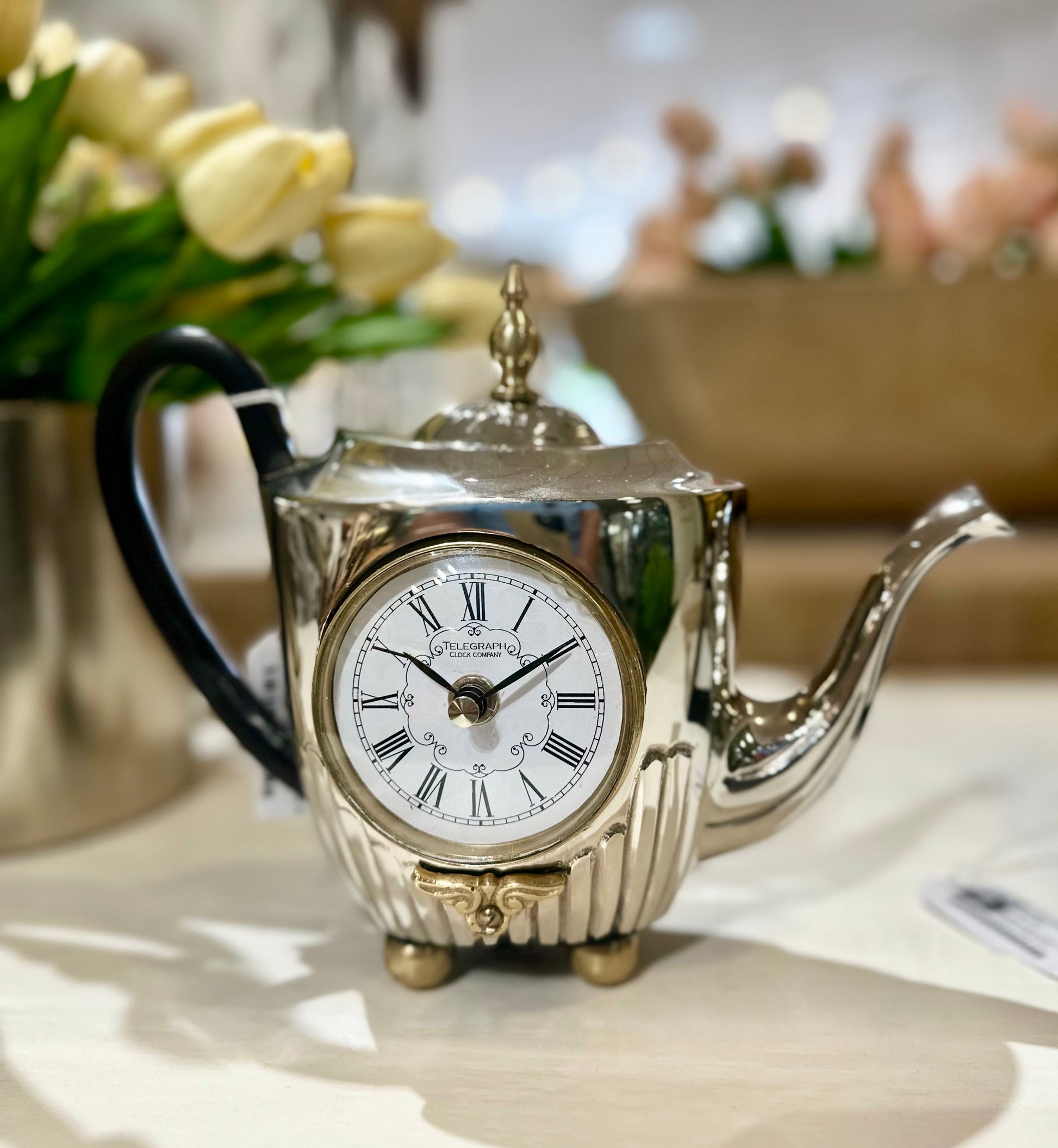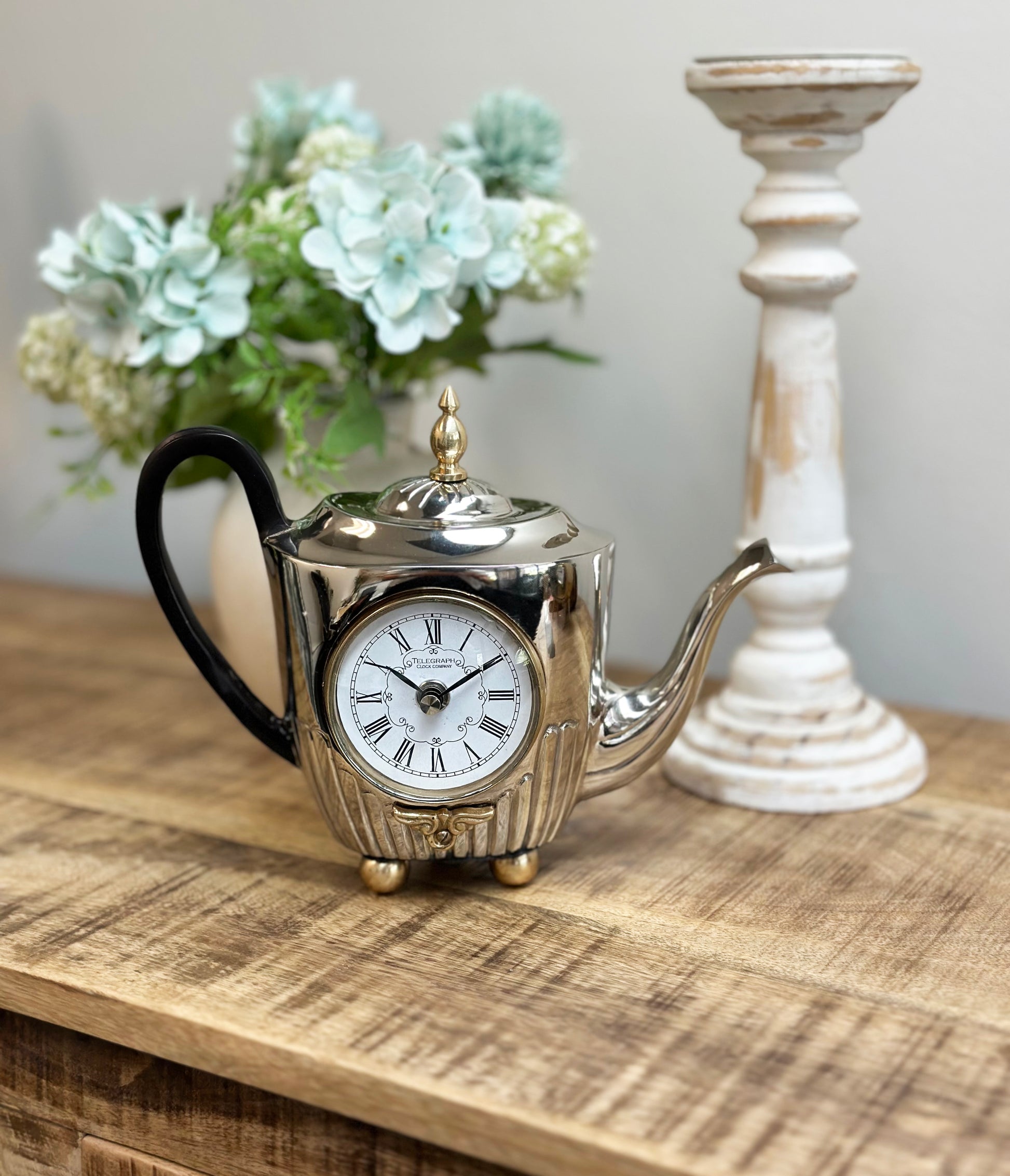 Table Clock, 2.5" Face, Nickel/Matt Antq Brass Black, India