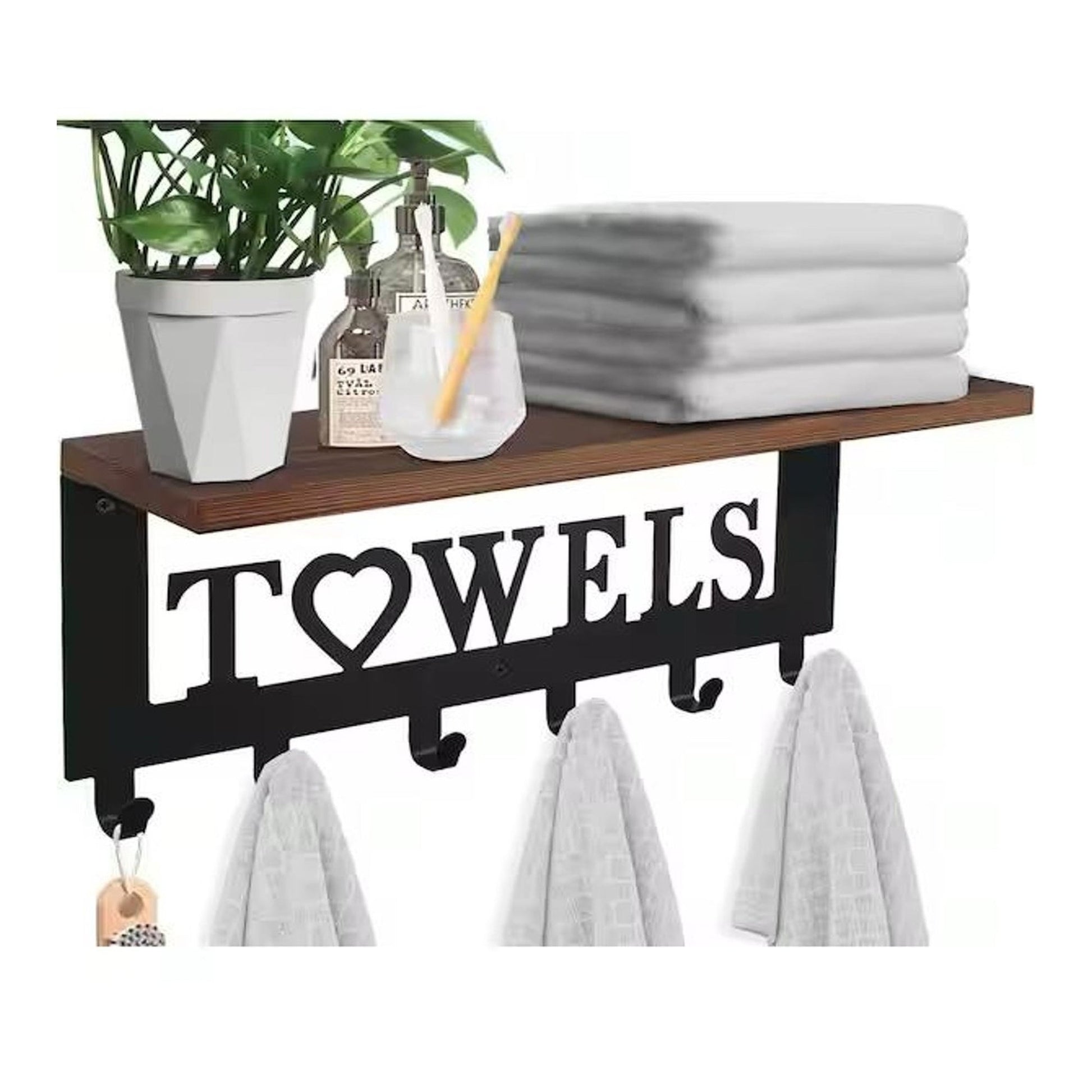Towels'' Hooks Rack With Wooden Shelf, 30% Off (SR)
