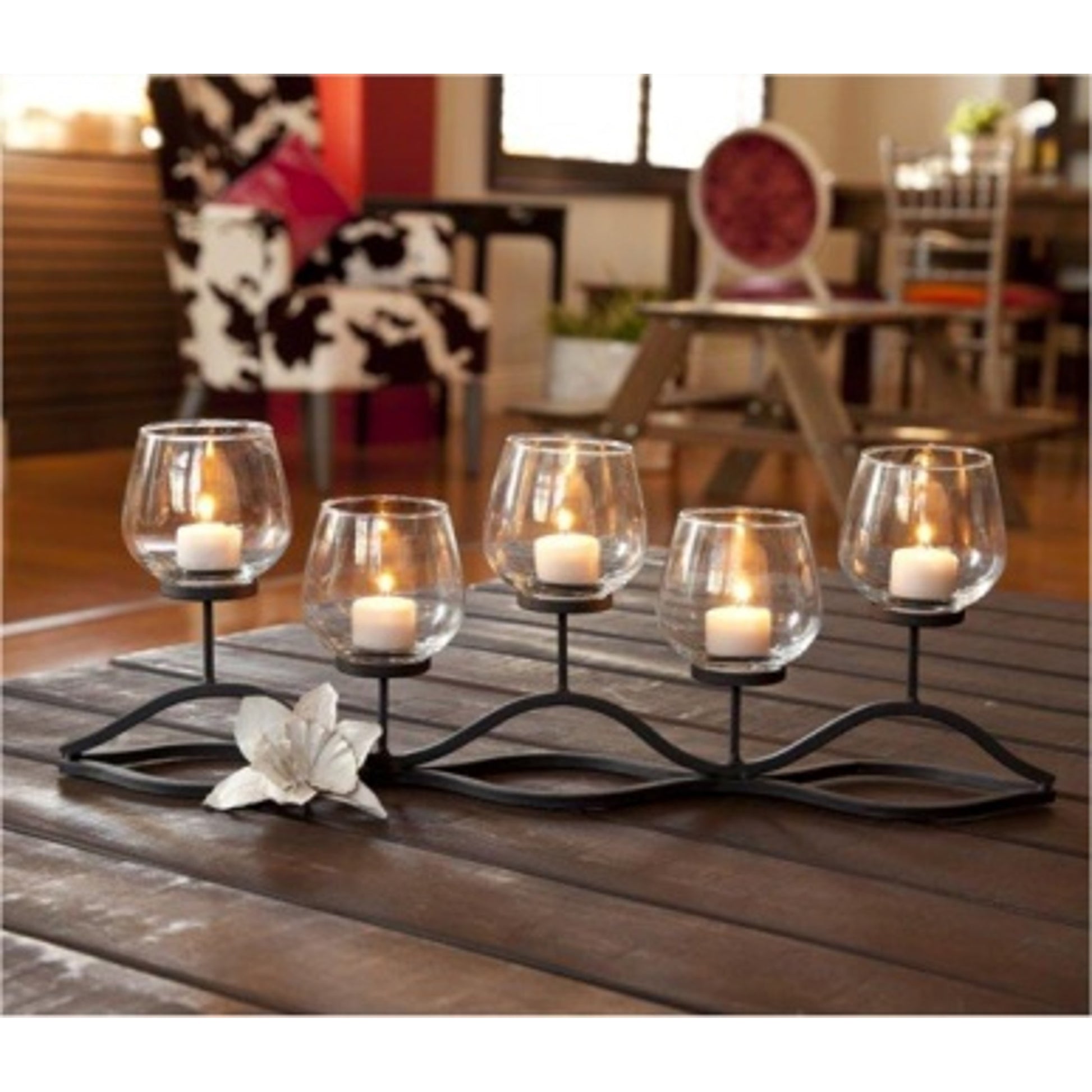 Metal And Glass 5 Candleholder