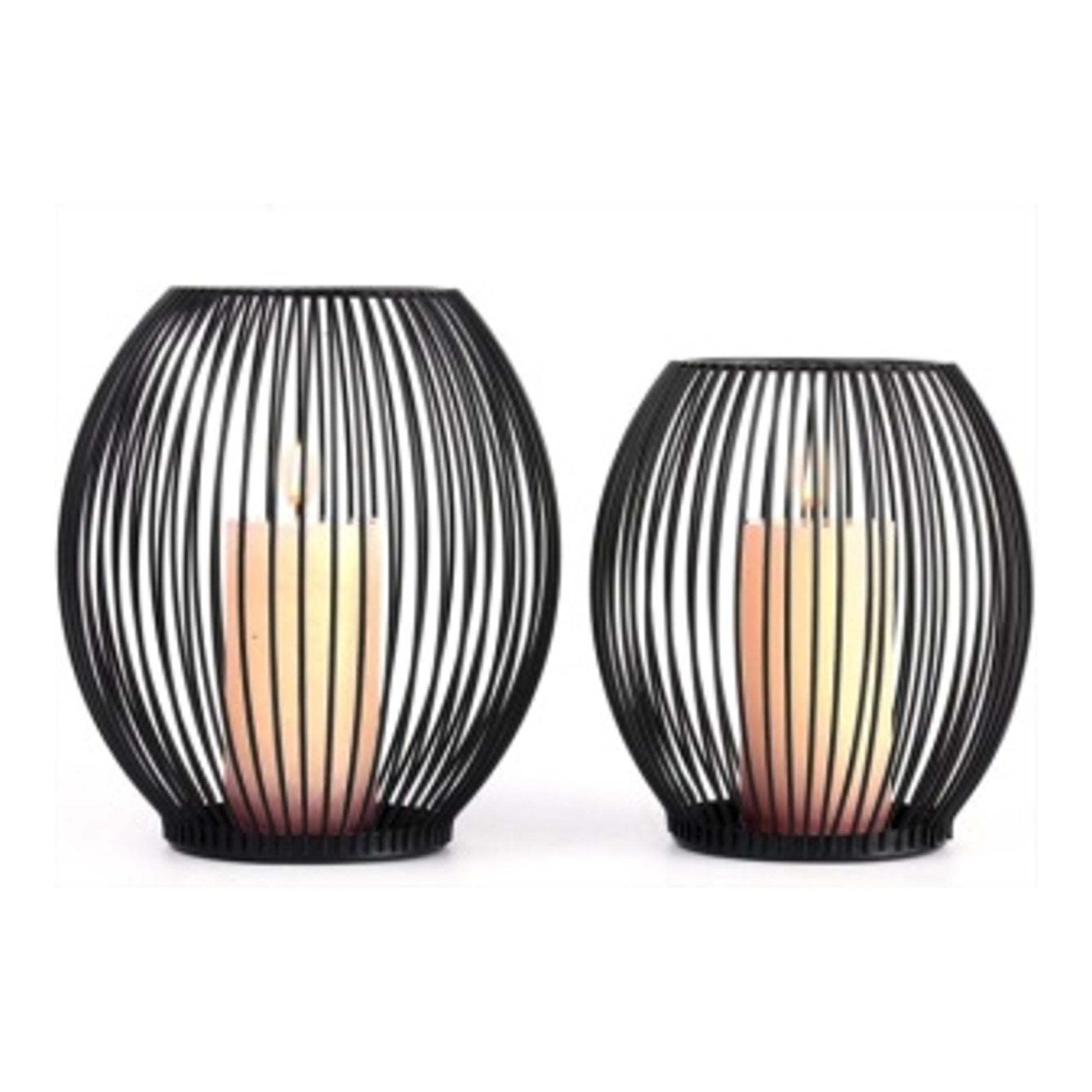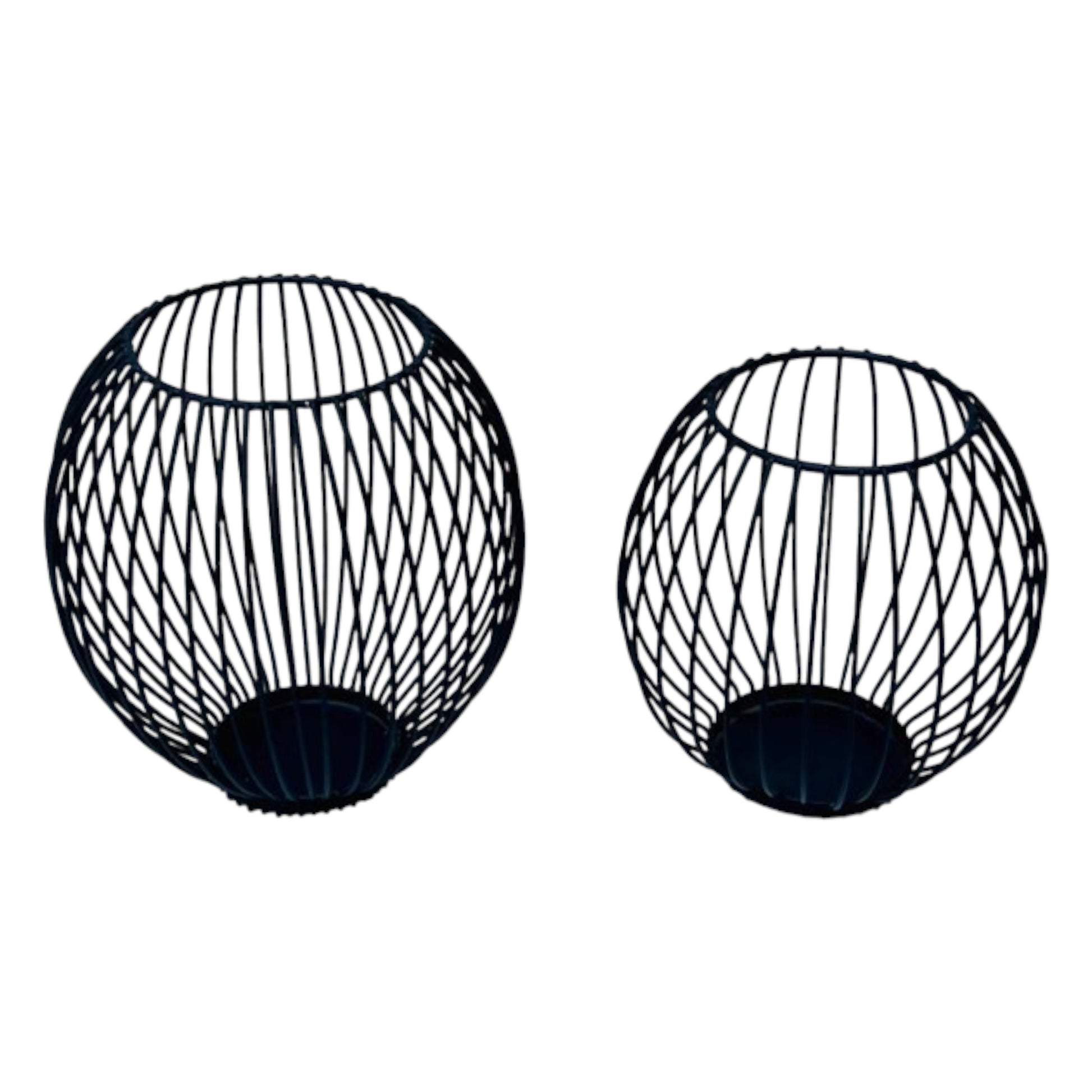 25% Off, Wire Cage Candle Holders, Set of 2, Iron, Black Matt, S: 6x6x6; L: 7x7x7 in, India