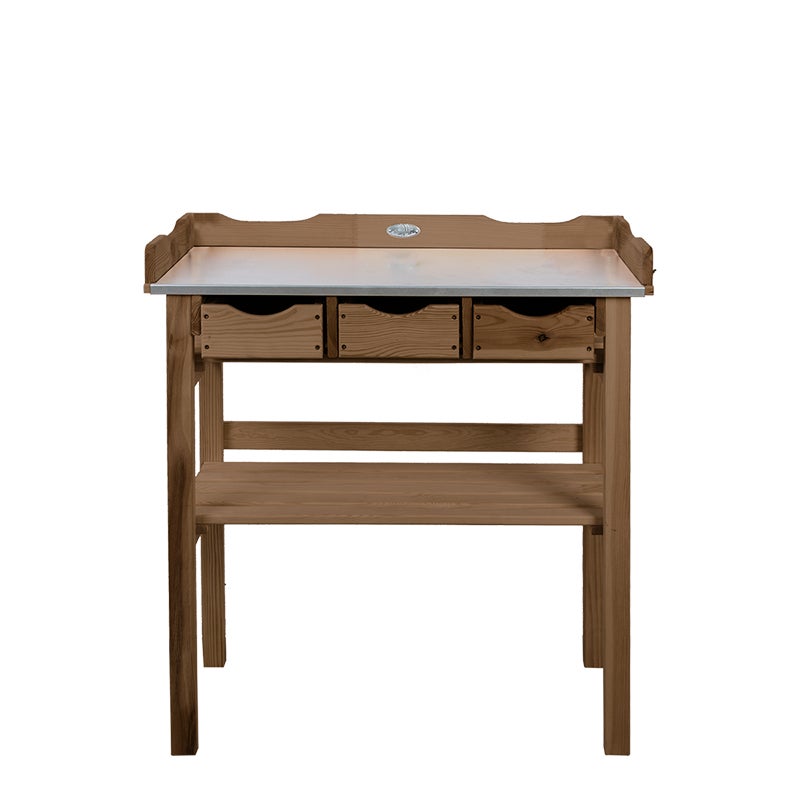 Keep your potting and gardening supplies organised with this potting bench. It has three drawers, a zinc top and a storage shelf.- zinc top- 3 drawers- storage shelf- produced in Europe