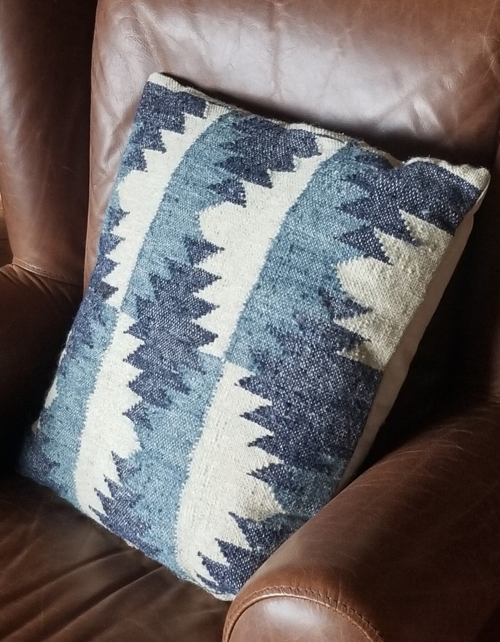 CUS-NVC11 Hand Woven Wool Cushion, 17.7x17.7in, Blue, Cover: Front: Wool, Back: Cotton, Polyester Filler, On Sale 30% Of