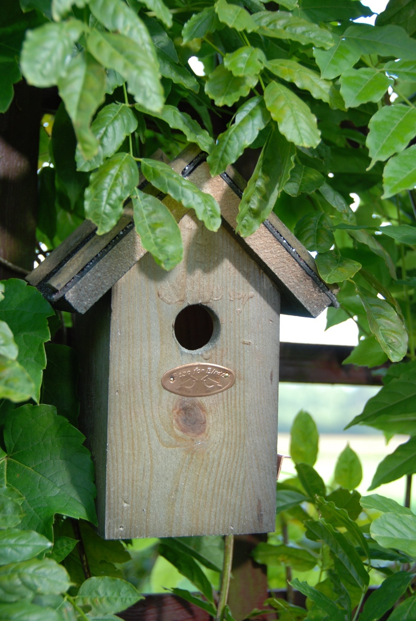 This traditional nesting box with rural feel with bitumen roof will give the Wren a good place to nest and will help conserve their population or help their reintroduction in a certain area. In the winter the box will be of good use to the birds that can take shelter from the elements.Place the nesting box on a tree or wall at a maximum height of 2 m (6.6 ft.) in a well hidden spot between shrubbery. Not in direct sunlight or in the prevailing rain side, with a unhindered flight path for the bird. Due to the territorial behaviour of the birds it is best to hang he nesting box at a minimum of 10 m (32 ft.) away from nesting boxes of the same species and at a minimum of 3 m (10 ft.) away from feeding houses. Fall is the best time to clean a nesting box. - key hole opening- door on the side- 30 mm (1.181") diameter entrance hole- suitable for Wren
