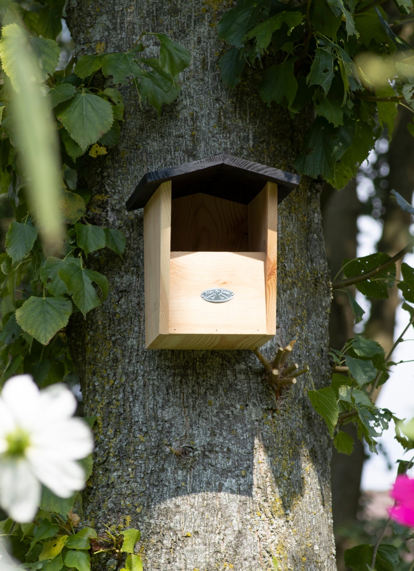 This birdhouse has been designed for the Robin. Except for the Robin, you can also expect the Spotted Flycatcher and the Common Redstart to visit the birdhouse. - made from FSC® certified pinewood- keyhole slot- will also be used as a shelter