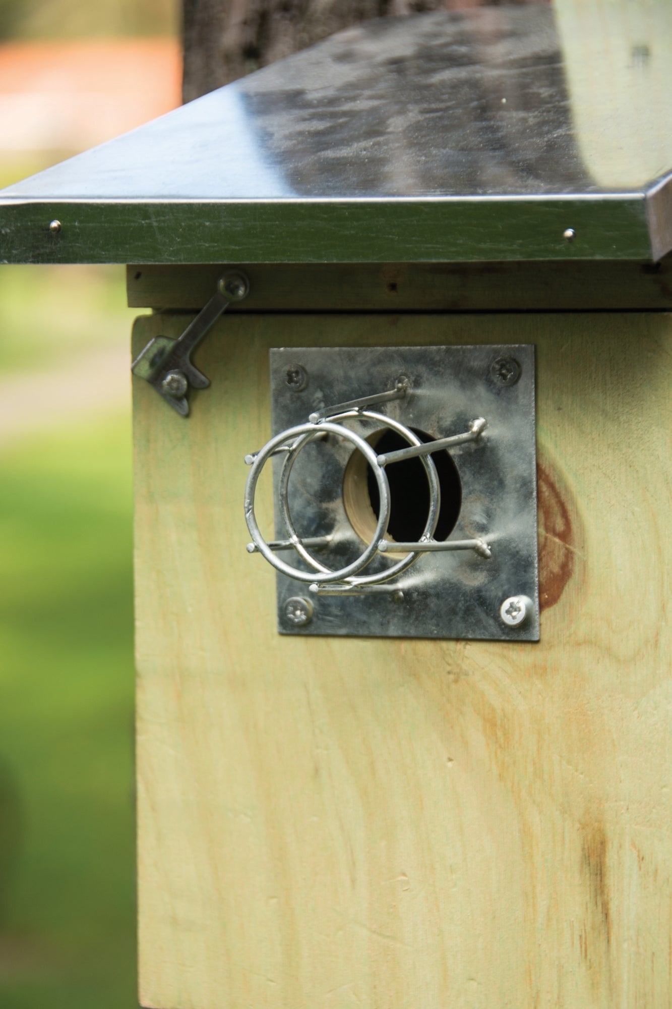 Eggs and young birds are often threatened by predators, which can enter the nesting box through the opening. This protection basket offers protection from predators such as squirrels, martens and cats. Woodpeckers might also sometimes take over a nesting box by chipping away at the entrance. This basket also prevents chipping away of the entrance hole. Preferably mount outside of the breeding season.- protection from predators such as squirrels, martens and cats and chipping away of entrance hole- 32 mm (1.26) entrance hole is suitable for Great Tit and Sparrows nest boxes- including 4 essembly screws- packed on blister card with eurolock- fixtures not included