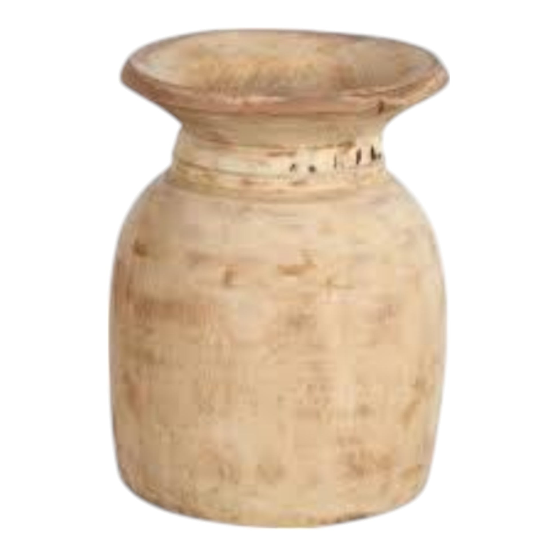 Bleached Vintage Wooden Nepali Pot, 6 Inch Appx.