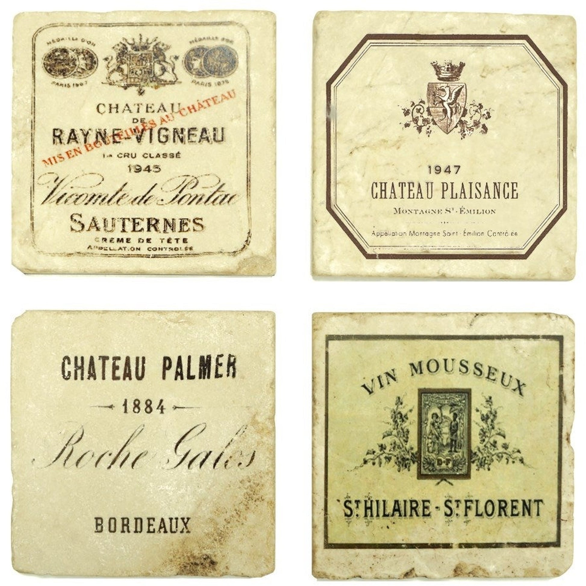 Vintage Wines Series Set/4 Marble Coasters 4x4 in., TurkeyT?rkiye