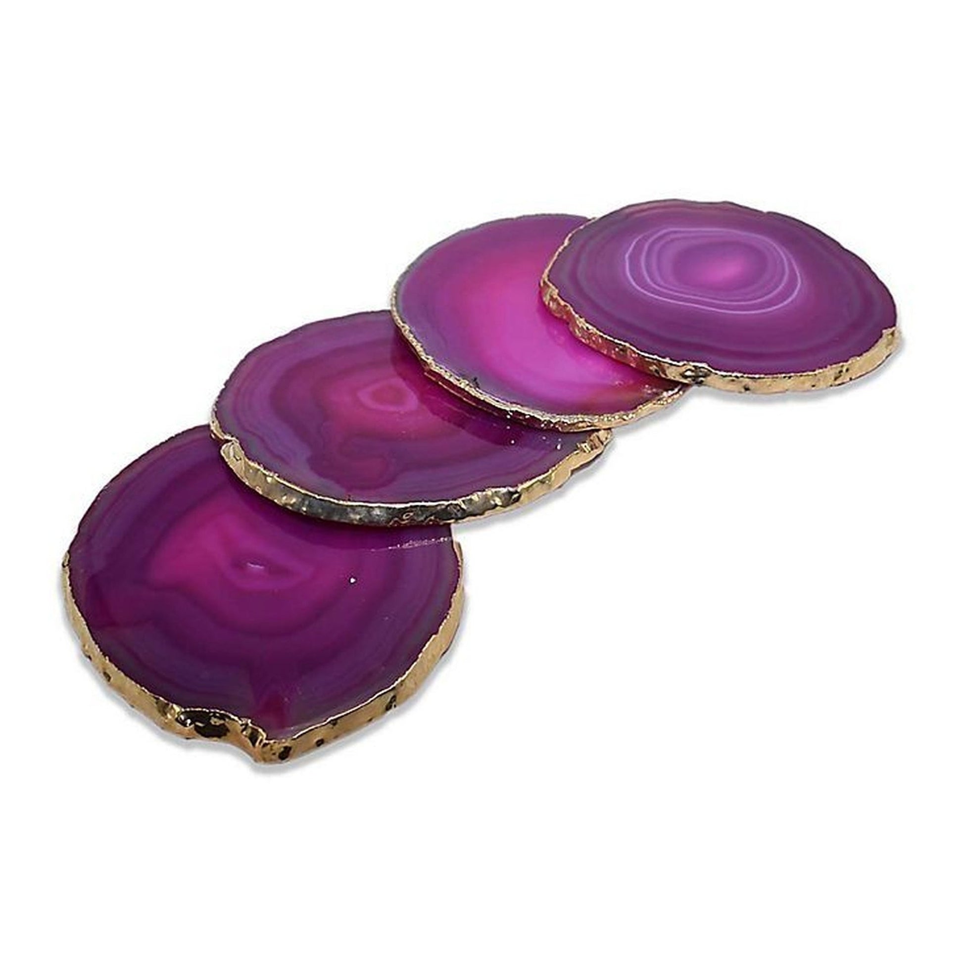50% Off, Pink Agate Coasters With Electroplated Gold Edges, 5 to 7mm, India, *Price Per Coaster*