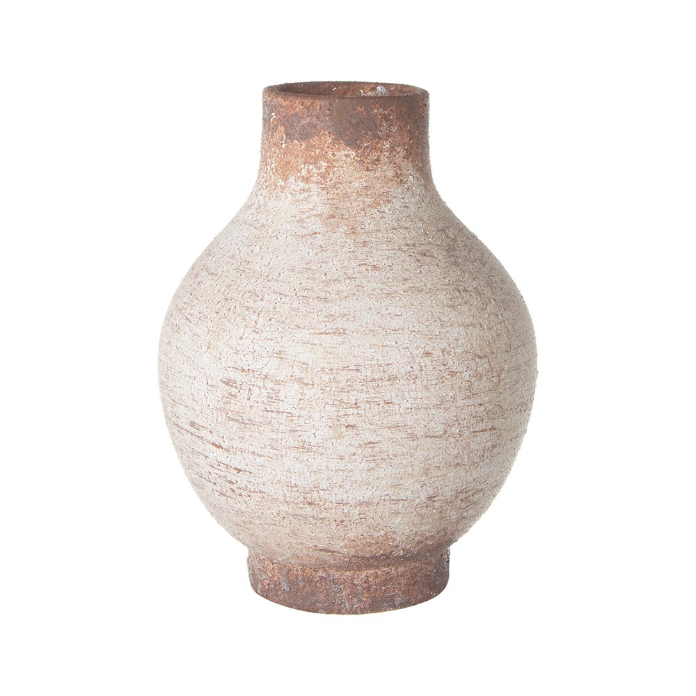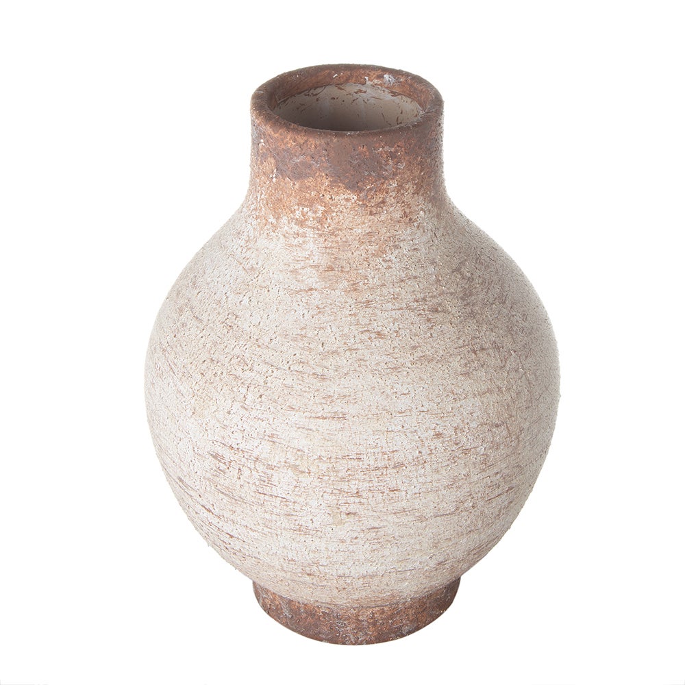 40% Off, Round Footed White and Brown Ceramic Vase, 100% Ceramic