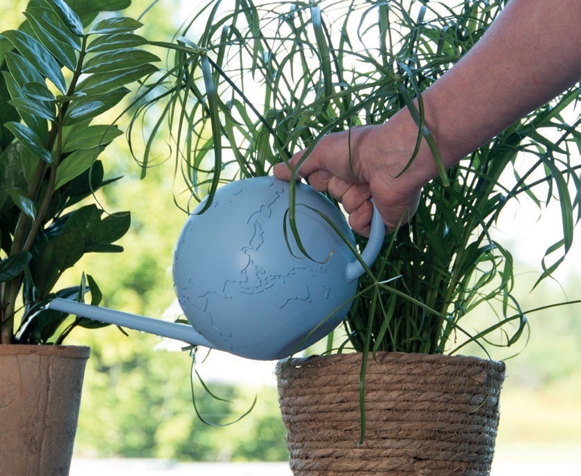 This watering can is made from consumer waste plastic and is ecyclabe. The can has a long spout for precise watering and has an eye catching globe design.- made from consumer waste plastic- recycable- long spout- globe design