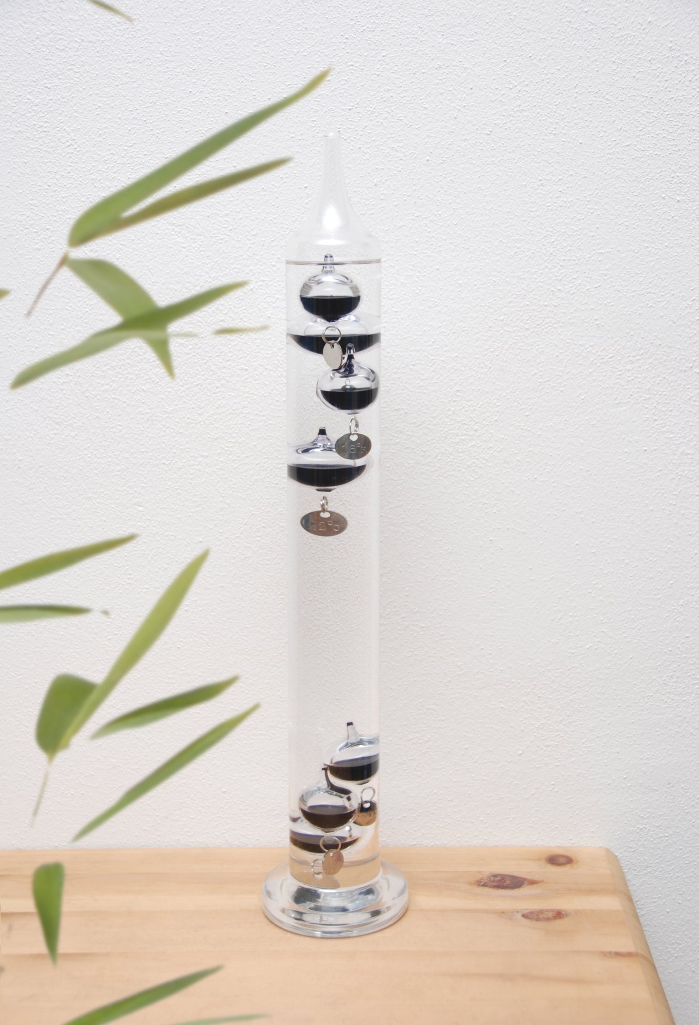 Galileo thermometer M, Glass, water, parafine oil, metal