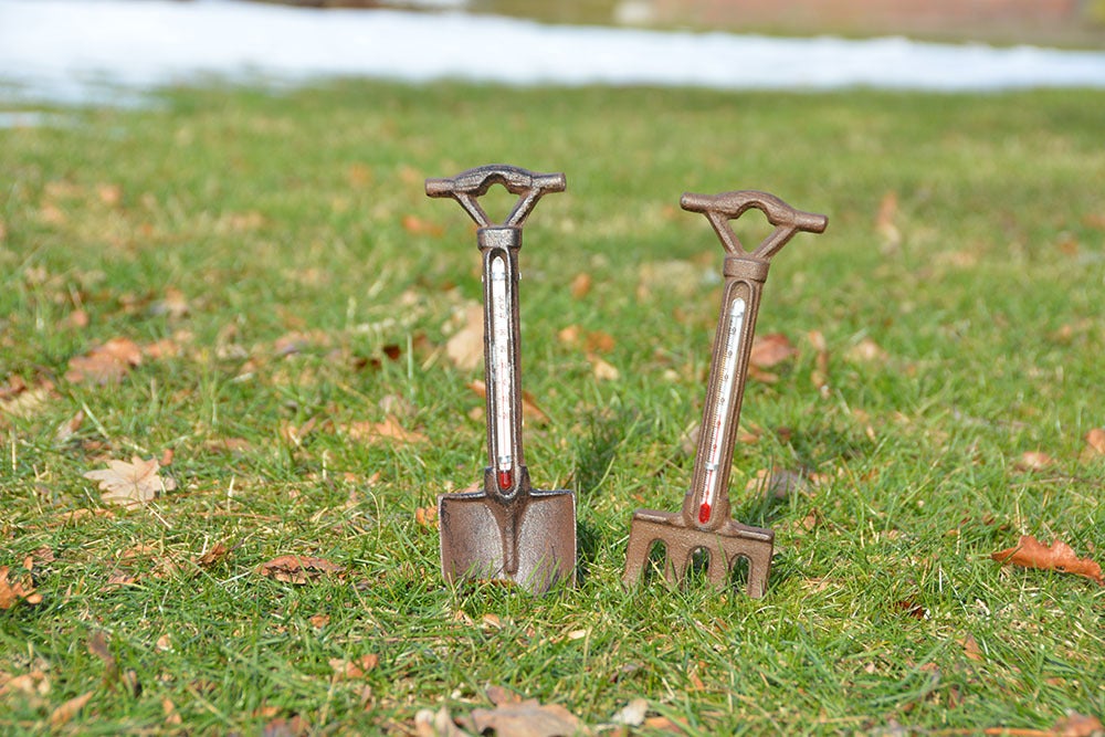 Garden tools should be present in every garden. This spade and fork also give the temperature from -20° to +50° Celsius (-4° to 122° Fahrenheit). These decorative cast iron tools have been hand cast according to age-old tradition and craftsmanship.- assorted pair (spade and fork)- temperature scale in degrees Celsius