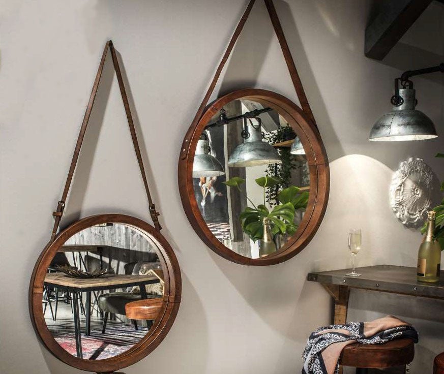 Rex Circular Mirror, Large, Leather, 20% Off (SR)