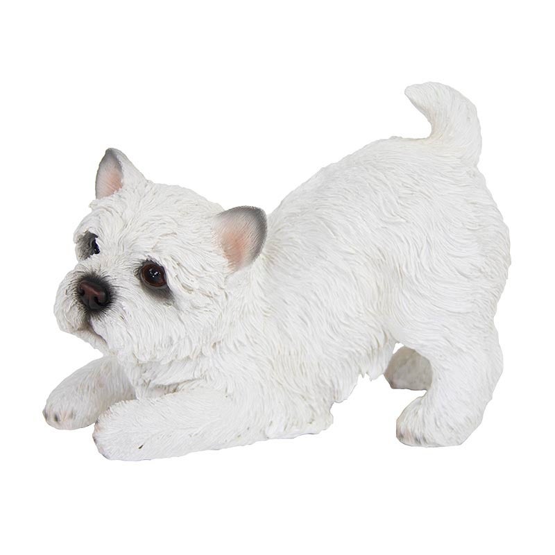This playing west highland terrier is almost indistinguishable from the real thing and made from polyresin. Suitable for in and outdoors, frost proof and UV proof.
