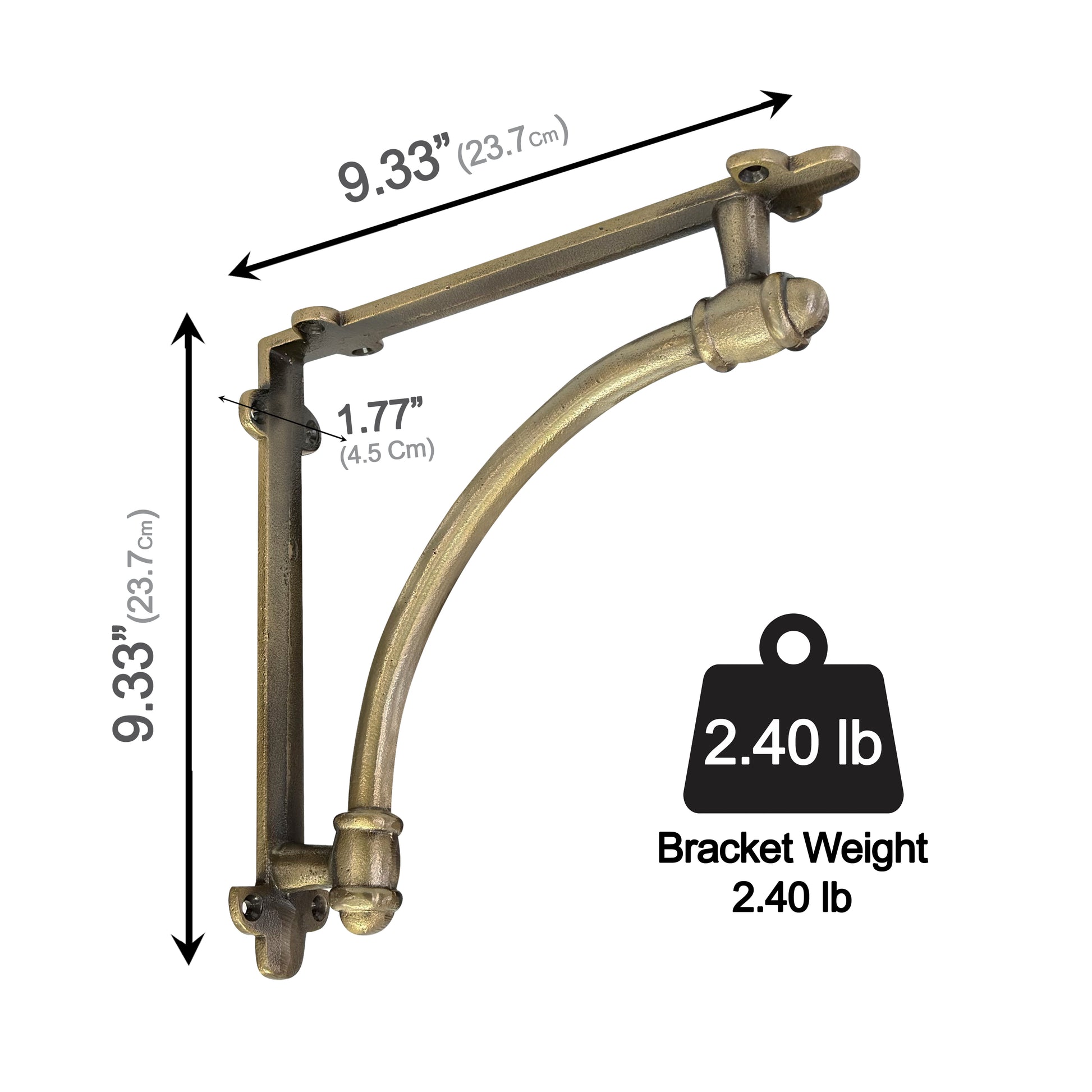 Slim Halfround Bracket, 9.6 inch, Antique Gold