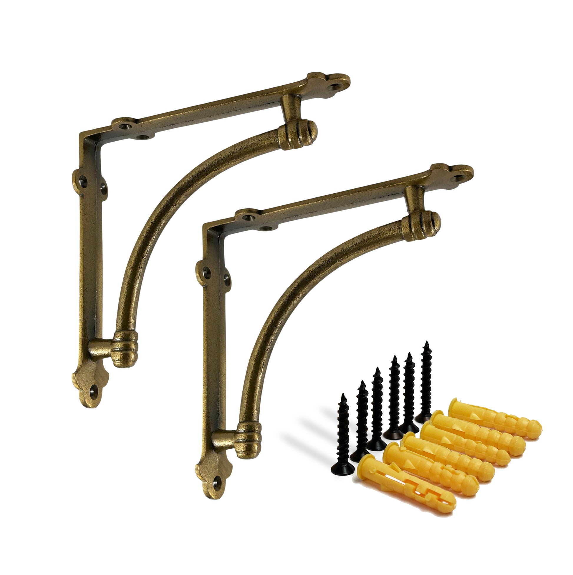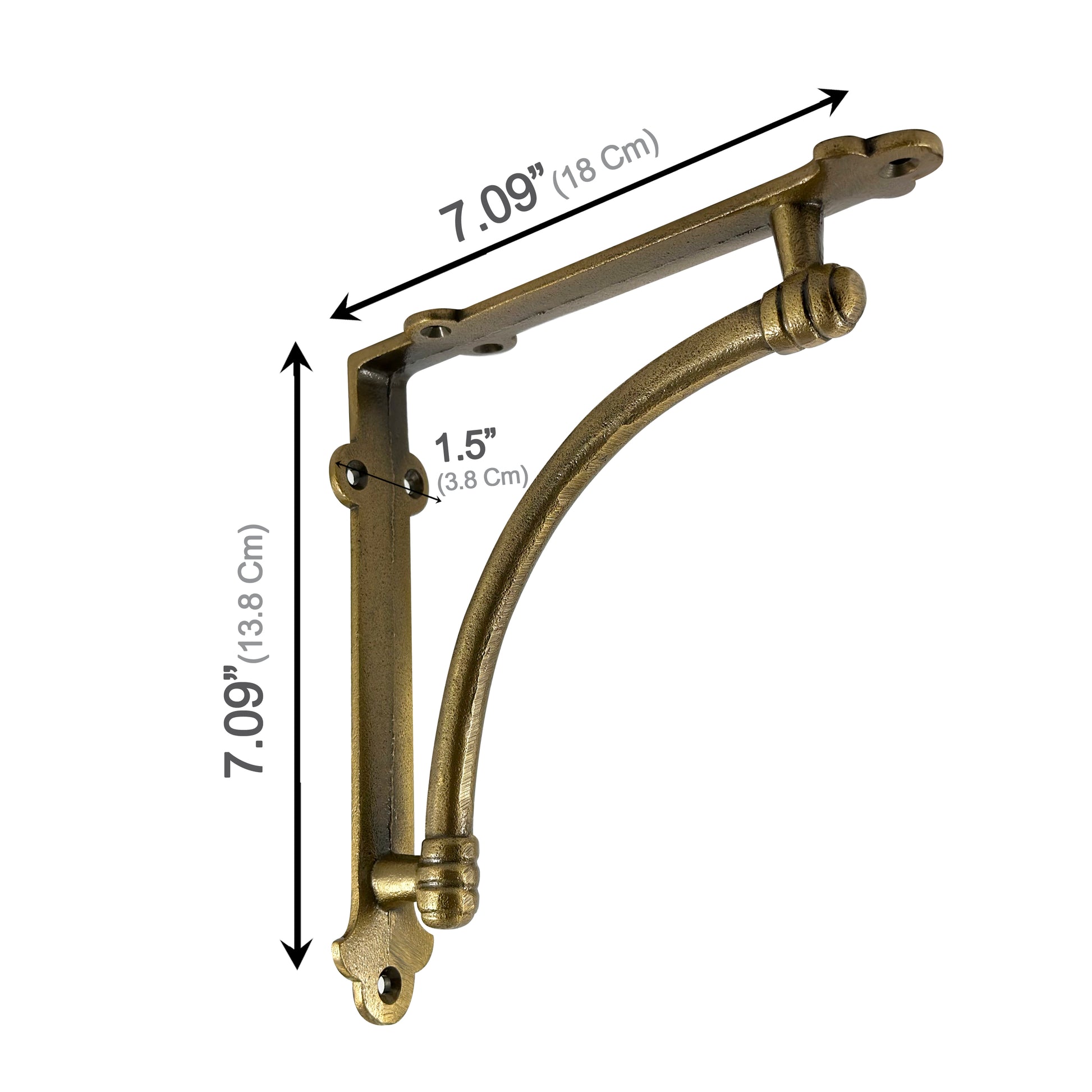 Slim Halfround Bracket, 7 in, Antique Gold, Cast Iron, India
